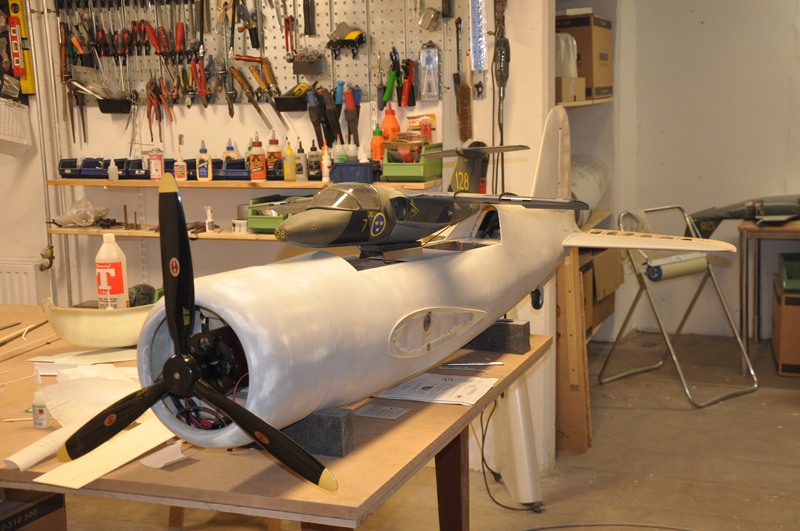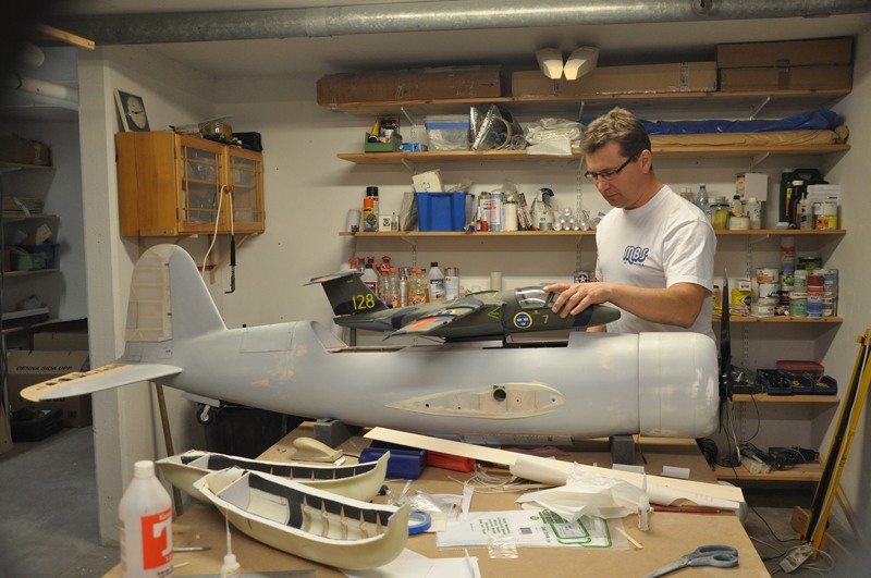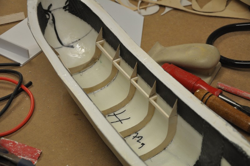 Jag hann montera in fem av spanten i den andra landställskåpan.