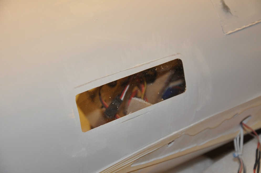 Efter lite slipning så hittade jag först ett fönster på ena sidan...och sedan ett till på andra sidan av flygplanskroppen!
