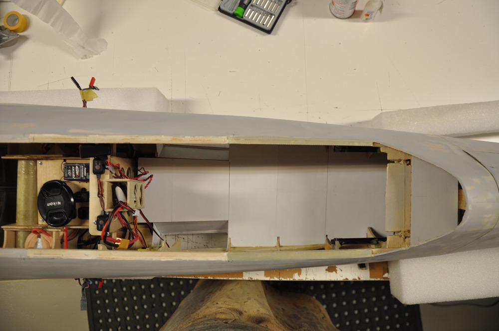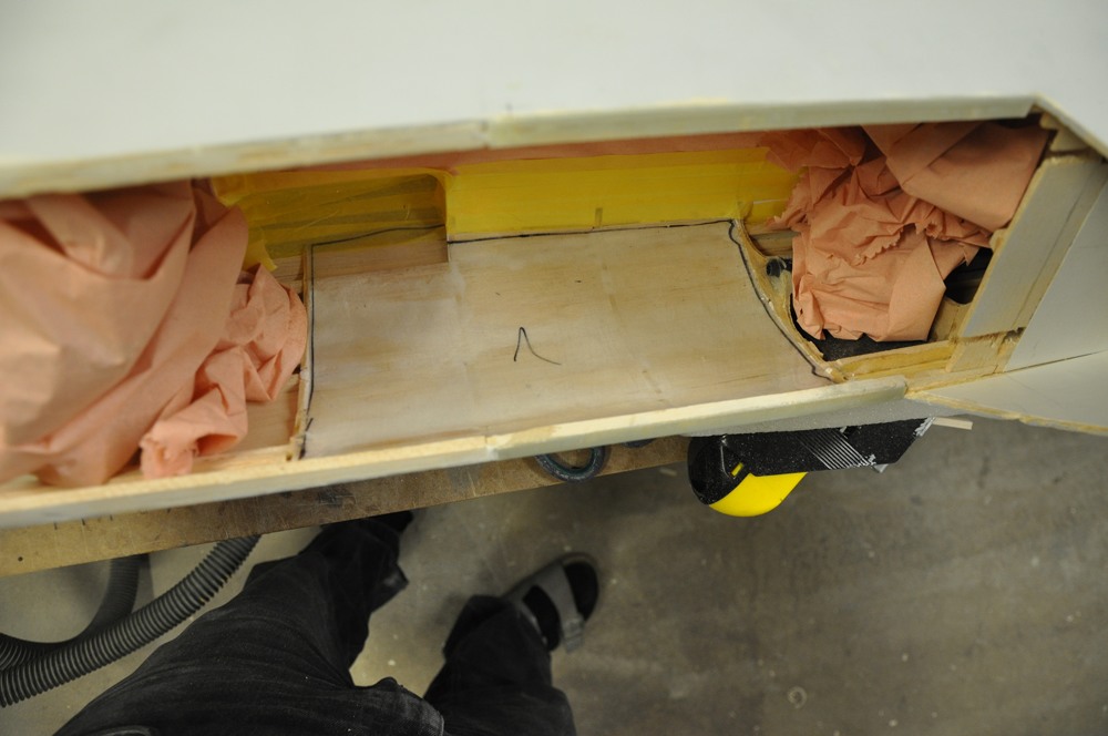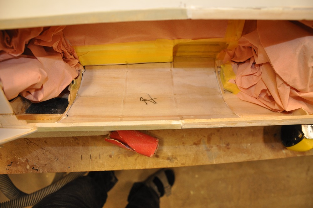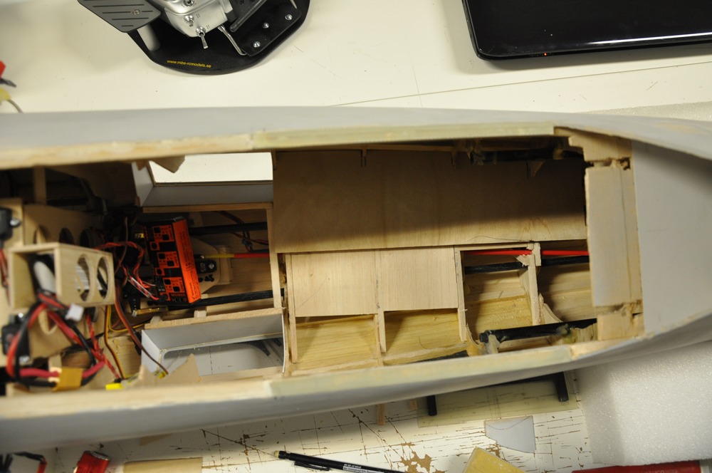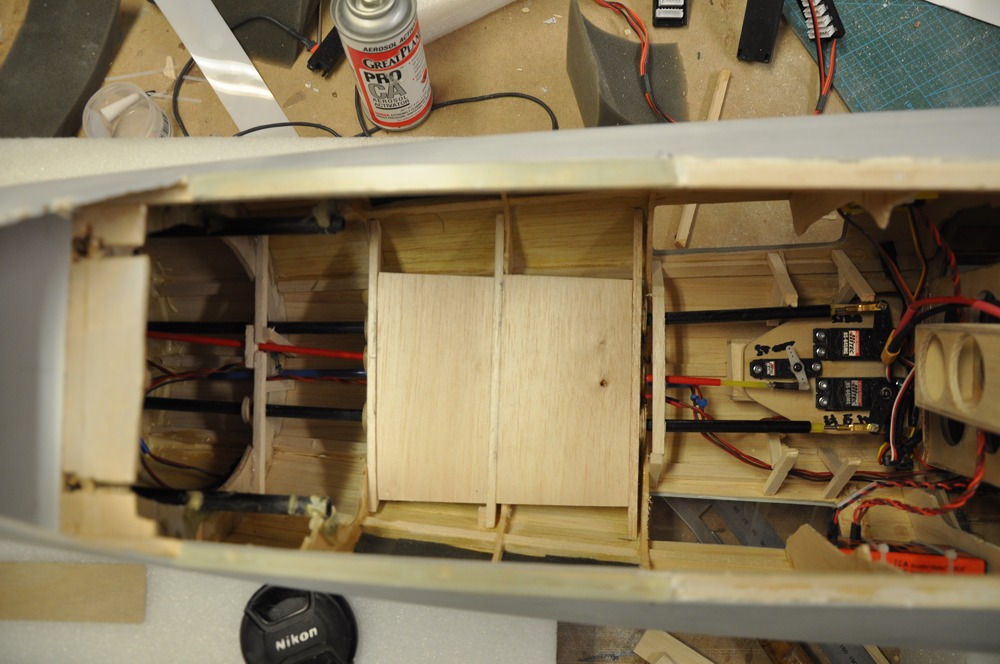 Området rakt under där spanarens stol skall vara fastskruvad i golvet har försetts med lite förstärkning i form av 5mm hård balsa.