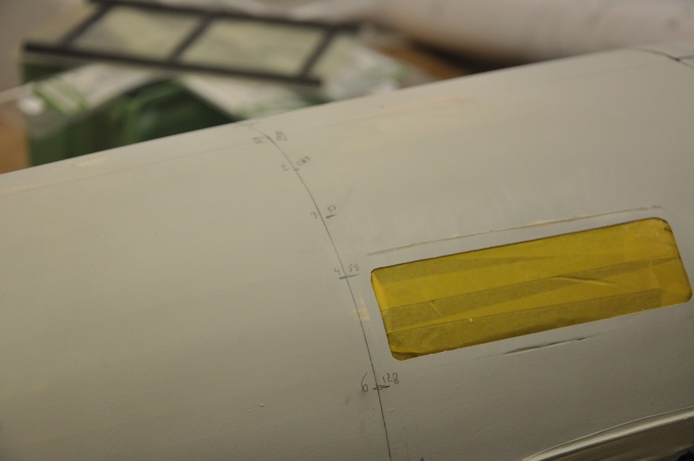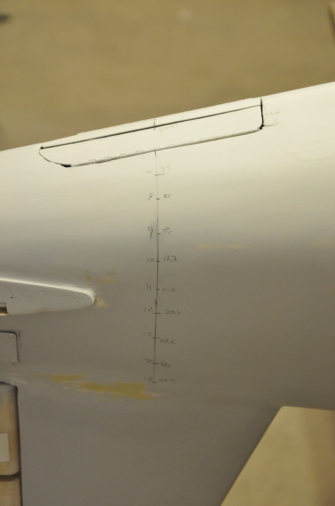 För att få spantens nitrader på kroppens utsida rätt kan man såga ett stort hål i en spånplatta som man sen sticker in kroppen i. Man kan då lätt följa plattan med en penna så att nitlinjen för spanten blir rätt. Att på fri hand rita en spantlinje av ett plant spant på en konisk kropp är i stort sett omöjligt. Kanske kan man även använda en laserlinje först från en sida och sen från den andra ( kanske två krysslaser, en från varje sida är ett bra knep)
