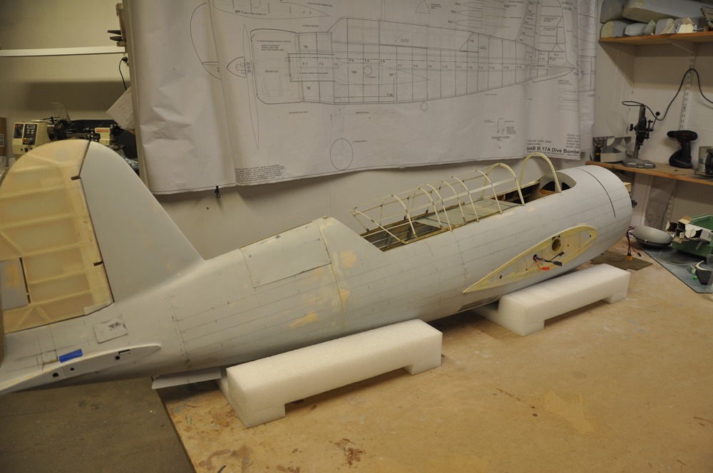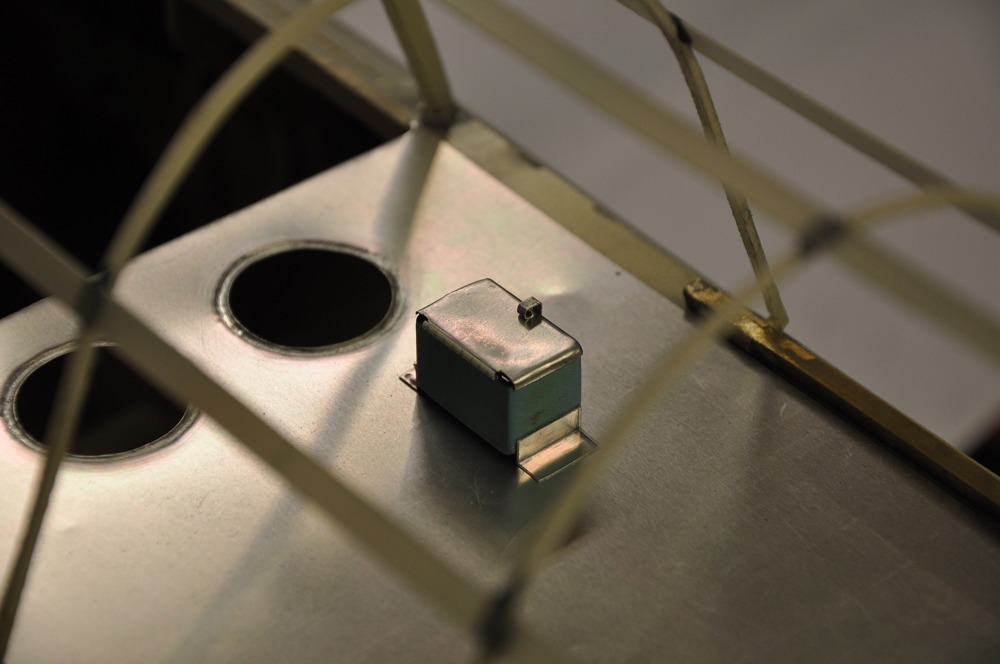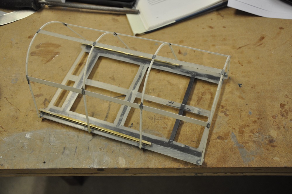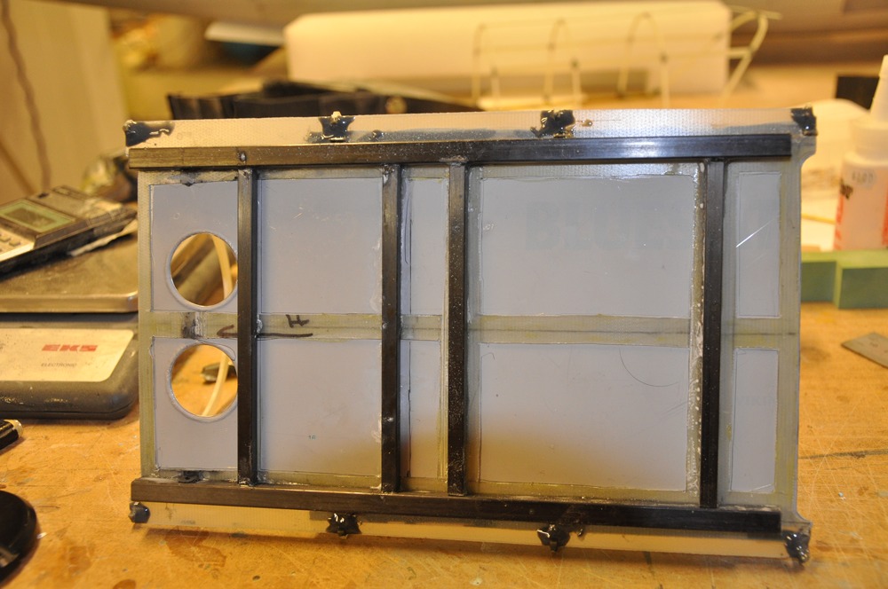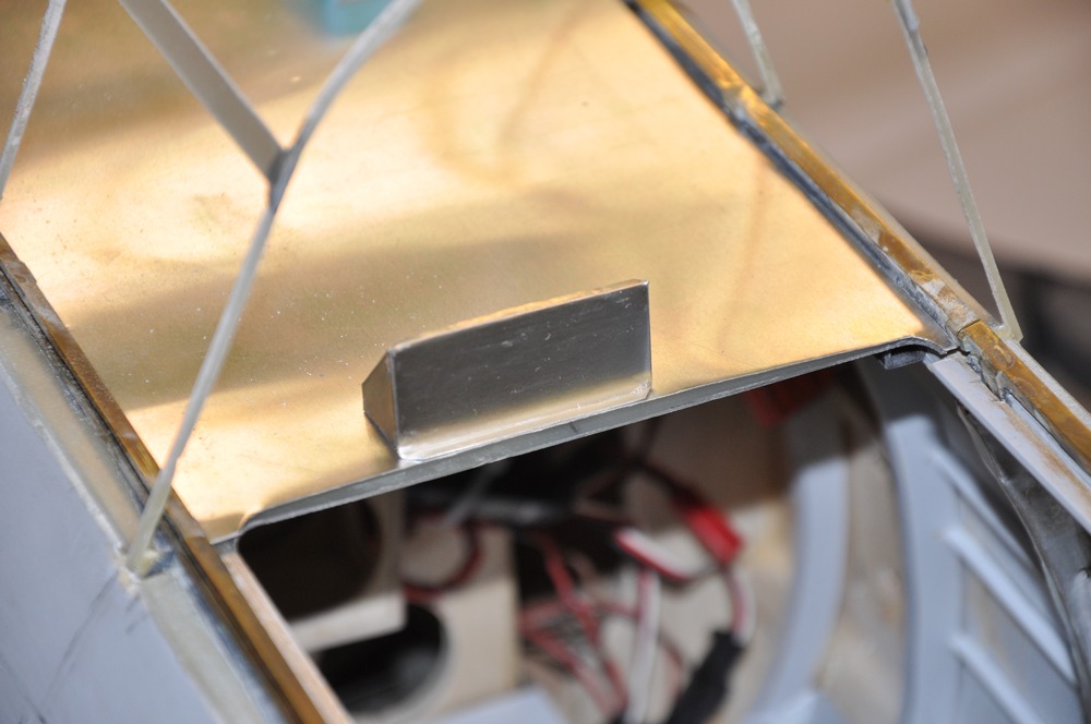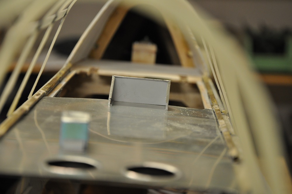Så istället för att måla började jag jobba med detaljeringen på ovansidan av radiohyllan mellan piloten och spanaren. Eftersom det behövs plocka bort några gram så tog jag bort en del av glasfiberplattan eftersom det är bara lägger på en massa vikt utan att bidra till styrkan.