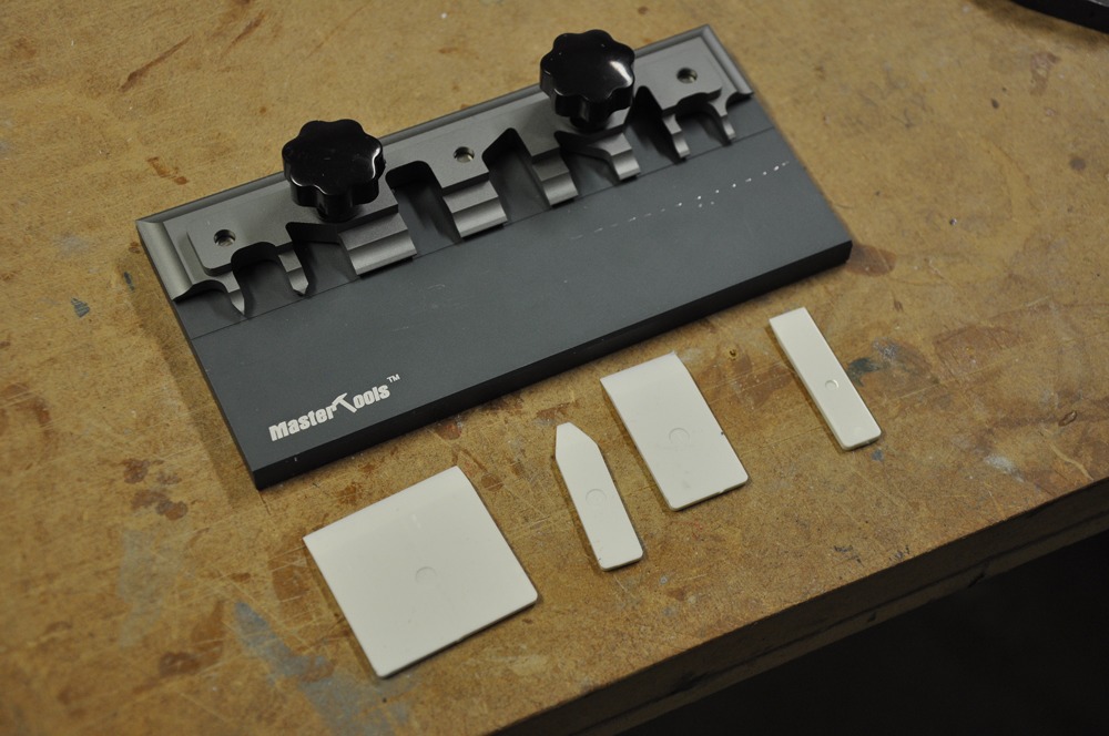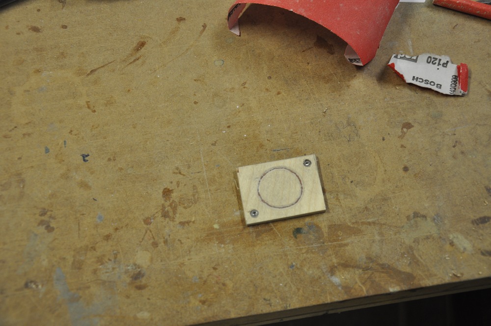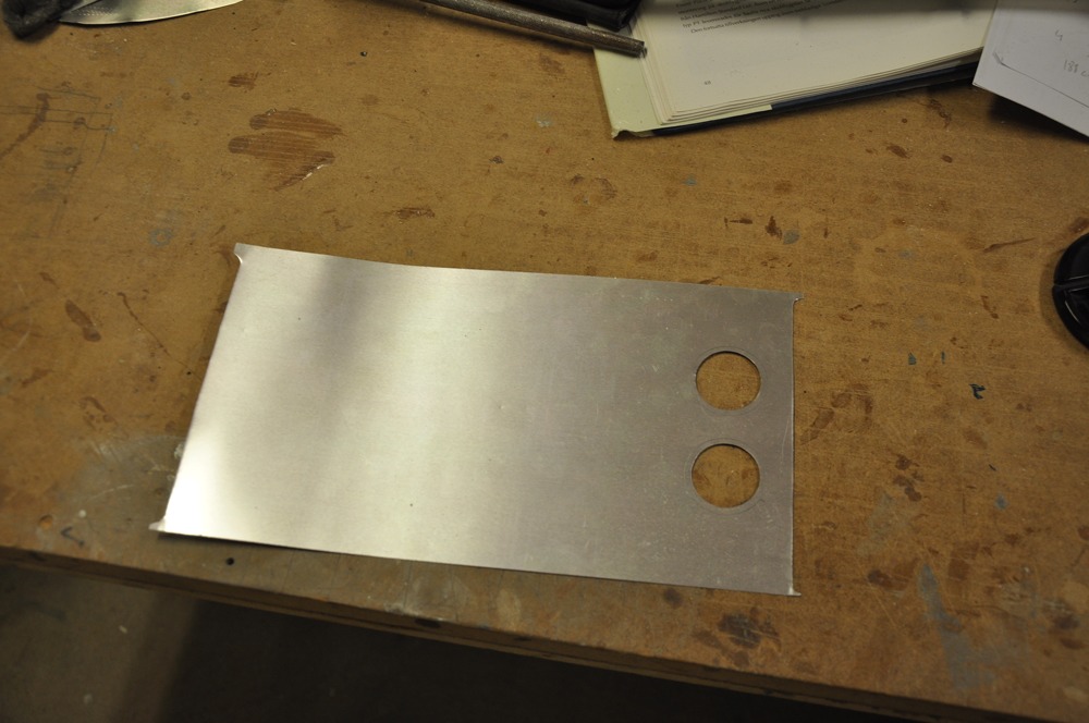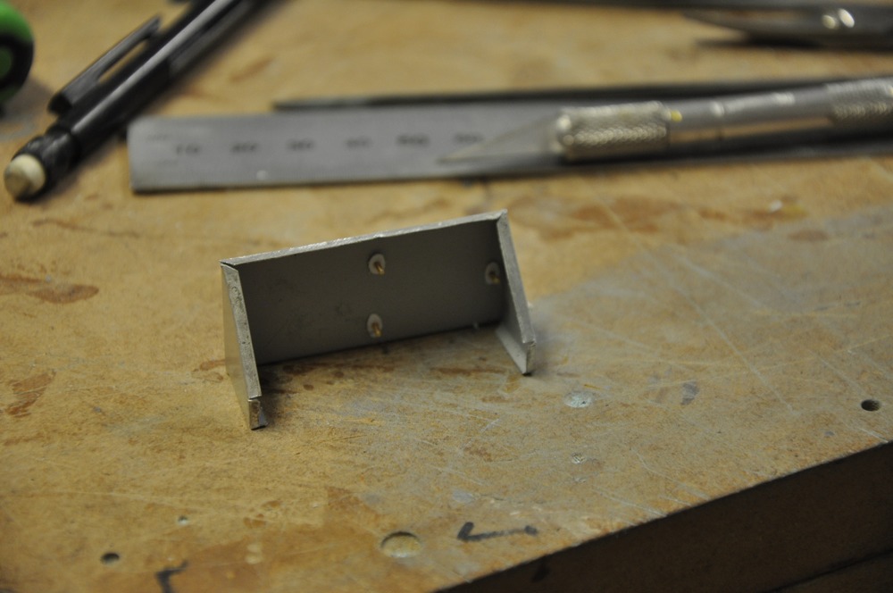 Hålens kanter har bockats för att göra dem styvare. Bara för att kunna simulera de här bockningarna så tillverkade jag denna lilla jigg.