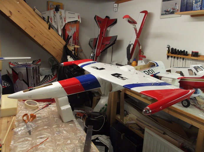 Just nu väger modellen 2400 gram utan elektronik och ackar m.m. så även om jag måste lägga bly i nosen, kommer modellen säkert inte att väga mycket över 3000 gram!?An Expert has done every mistake ...