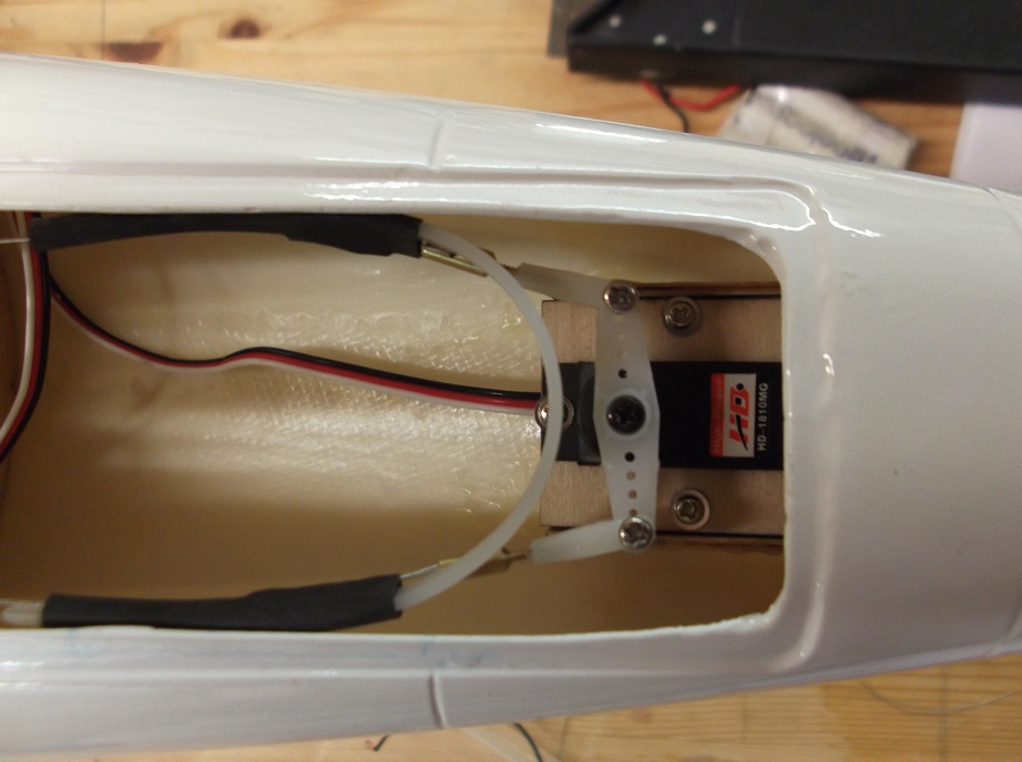 Har borrat hål för vingskruvar och monterat vingen på kroppen. Nu framgår det tydligen, att modellen är baktung.En blyklots i nosen på 500gr får den att balansera, så det ska bli intressant att se, hur jag ska lyckas med den uppgiften??? :stupido2: