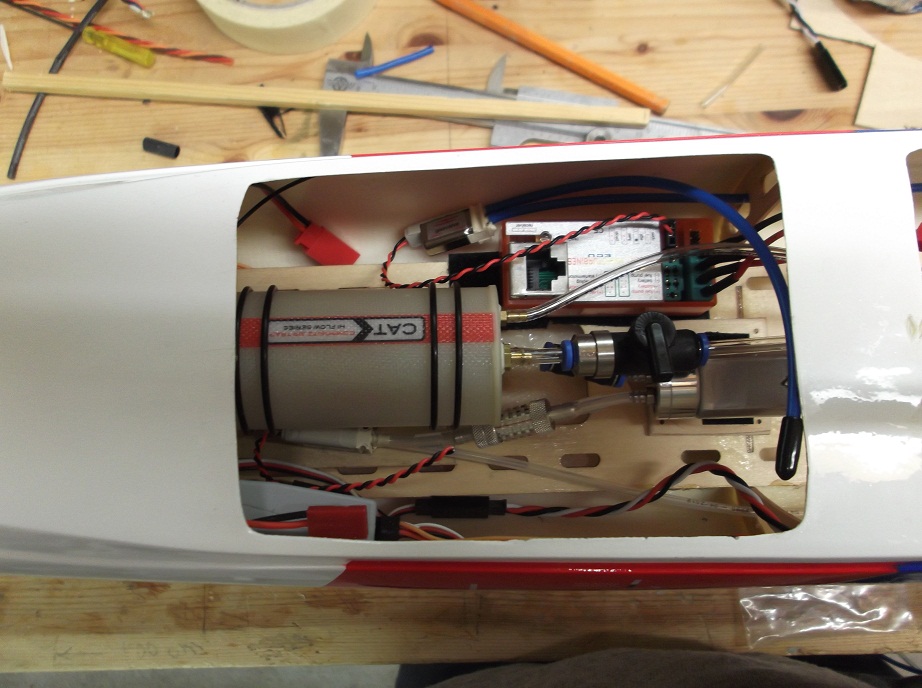 Nu börjar det närma sig slutet! Håller på med montering av komponenter, så som, mottagare, bränslepump, solenoidventiler, styrenhet till landingsljus, ECU´en. Upptäckte, att det fattades en påfyllningsslang till bränsletanken... very funny :sarcastic:
