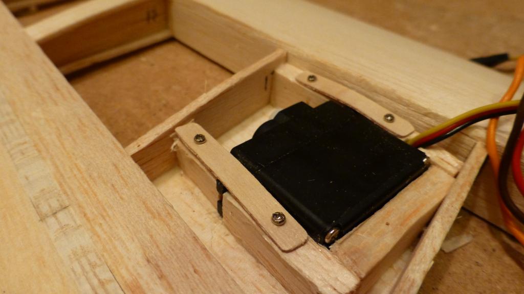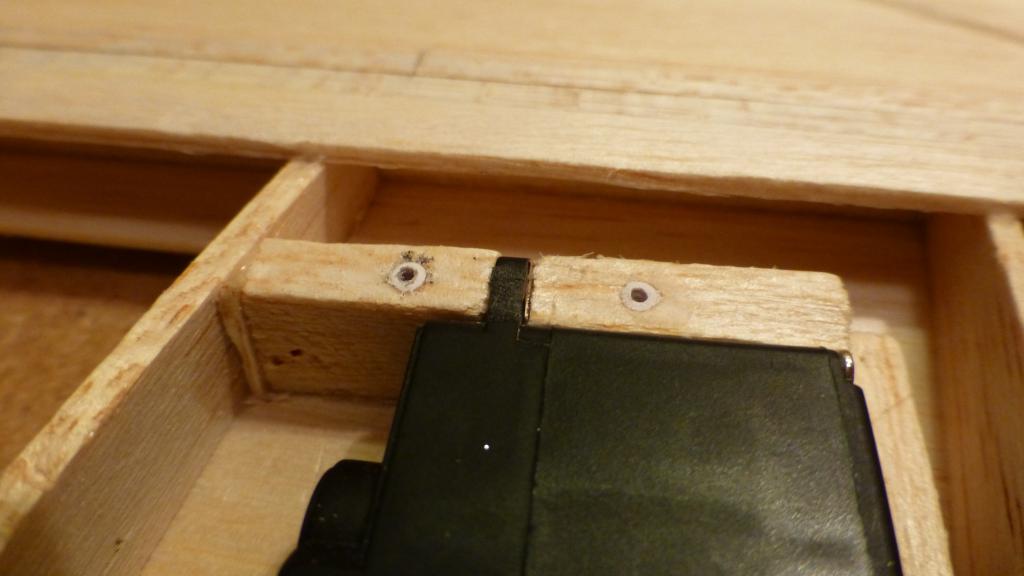 Tackar tackar! Jodå Thomas, skevrodrena får jag nog ordning på, dom mår redan bättre. Verkar som dom "fjongade loss" lite när jag skar bort dom. Men jag kommer nåla fast dom i rätt position med lite fukt över natten för att det ska bli helt bra. Angående servona så har jag inte grubblat ut nått bra ännu. Har egentligen inget i mot att limma fast dom för all framtid men skulle gärna komma åt skruven till servo oket.