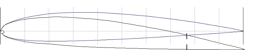 Sen skulle jag 'få till' en mall till en 410 mm lång sprygel. Jag ritade lite i Word och delade på en sprygel (NACA 2414) i två halvor à 205 mm, skrev ut på ett A4, klippte ut och klistrade ihop! Blev perfekt!