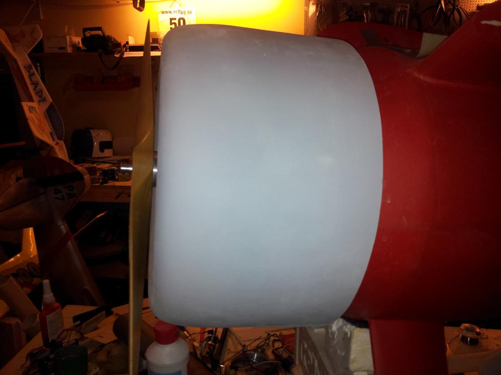 Stödringen inuti kåpan är inte fastlimmad ännu, tror jag ska backa kåpan nån centimeter, det blir väldigt tight mellan propellern och kåpan...