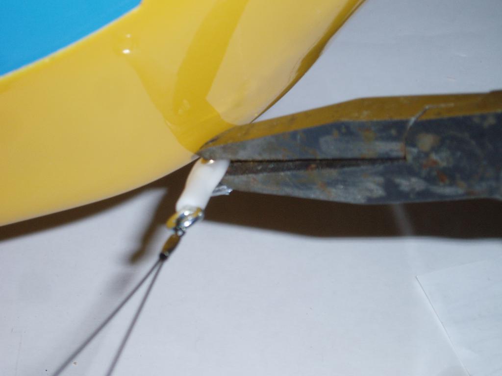 Här ligger nu tyngdpunkten enligt nålen/lodet det bör motsvara ca 25% av vingens korda, men tyvärr så blev jag tvungen att barlasta längs bak med 70 gram, men ser det inte som någon katastrof då totalvikten på modellen blev 5285 gram och resulterade i en vingbelastning på 65g/dm2.