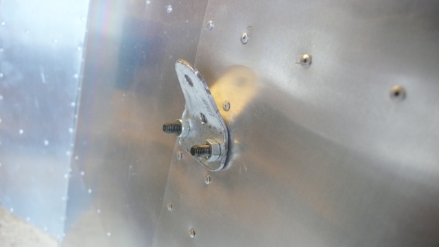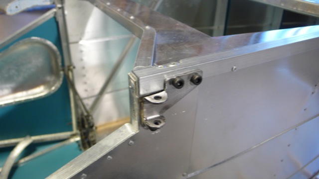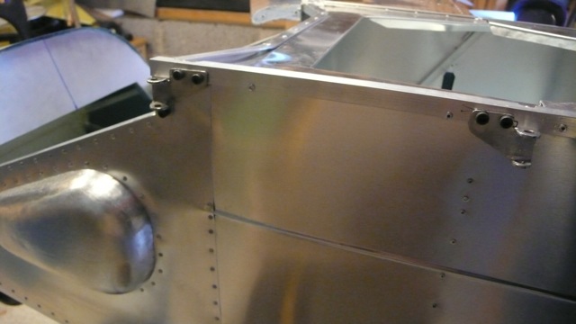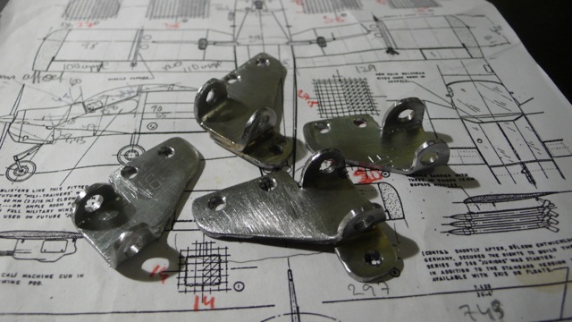 Jag fortsätter med metallslöjden. Har nu tillverkat vinginfästningarna till kroppen. De är sågade ur vanlig spikplåt från byggmarknaden. Det är ganska lättbearbetet men ändå tillräckligt stabilt och går bra att svetsa/hårdlöda. Även fästena för vingstöttorna monterade. Hålen på vingens ovansida är för att kunna komma åt bultarna för fästet.