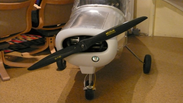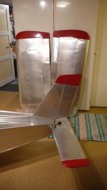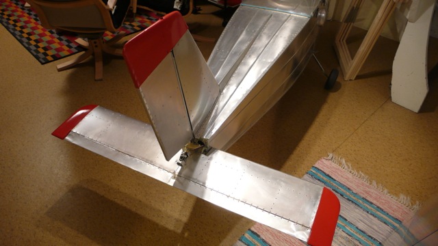 Tyvärr är plåten väldigt känslig för åverkan och det blir lätt bucklor i den. Fast det gör att modellen ser mera riktig ut - det är ju få riktiga alu-flygplan som inte har lite skavanker här och där. Det är två sorters alu-plåt i kärran, dels riktig flygplansplåt i 0,3 mm tjocklek som är lite hårdare och dels litho-plåt som är 0,2 och 0,3 mm och lite mjukare. Men bucklig kommer den att bli.....