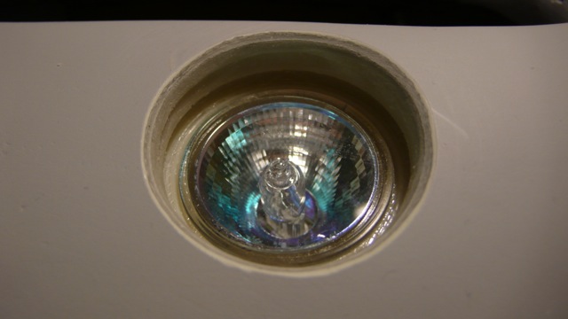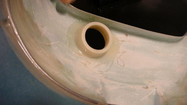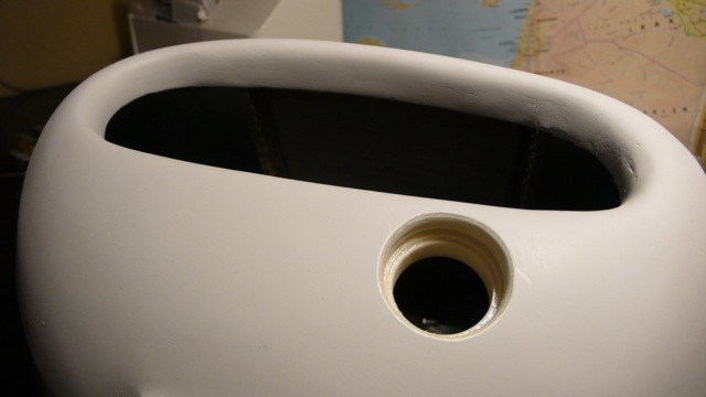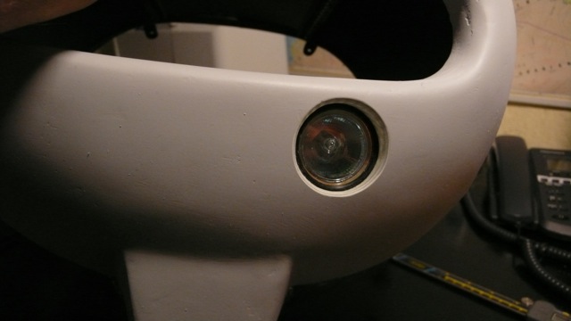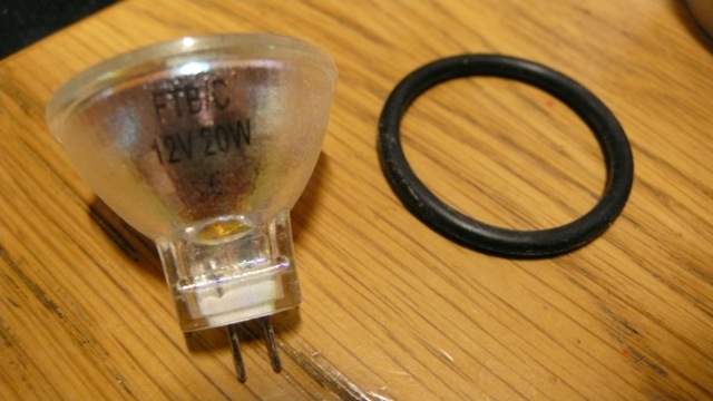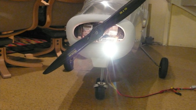 Kvällens jobb blev att fixa en landningsstrålkastare. Tog en vanlig 12v halogenlampa med passande diameter. Ritade upp en hållare och printade, limmade in i kåpan och dremlade upp hålet. Lampan hålls på plats av en O-ring i ett spår i hållaren. Enkelt att byta och sitter riktigt bra. Bilderna förklarar nog det hela.