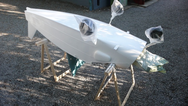 Än är det inte semester i MFI-fabriken. Vingarna nu målade och märkta och spetsarna monterade. Servona instängda så vingarna är nu flygklara. Även staben klar. Kroppen har fått lite tillskott i sittbrunnen i form av mittkonsoll och del av instrumentpanel mellan konsolen och inrumentbrädan. Dags för målning och märkning av kroppen. Motorkåpan målad och klar. Målet är att hon är i luften på Östersundsträffen 2014/ RCFF Shootout.
