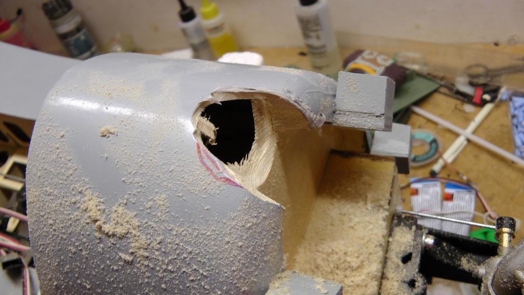 Fick sprätta loss och flytta ner den ca 10 mm för att inte nosen skulle "hänga" ner.