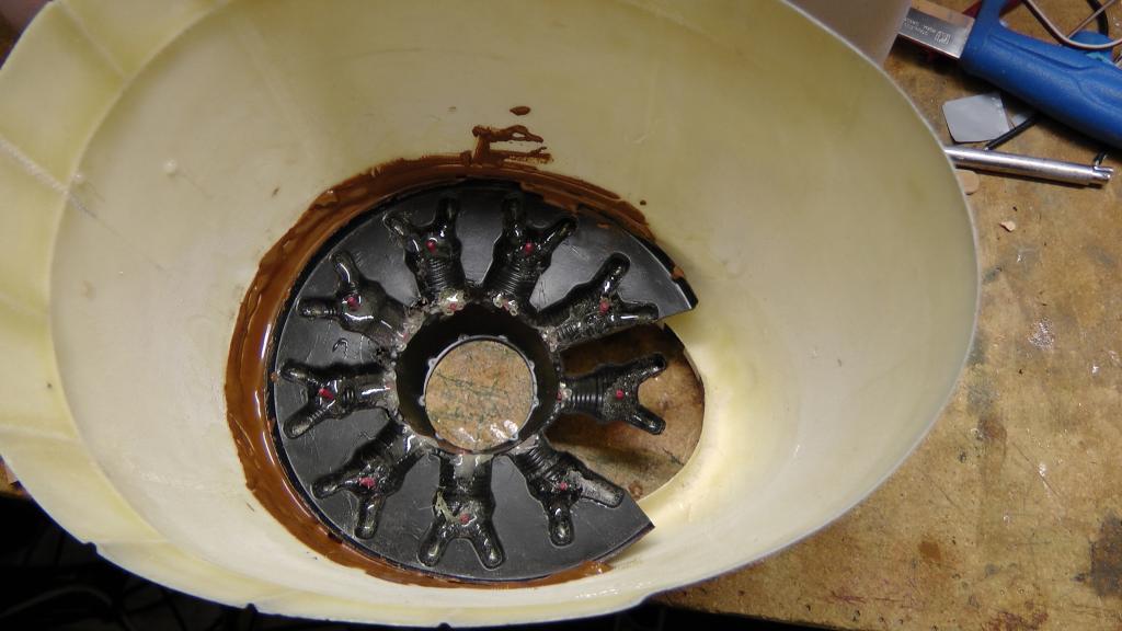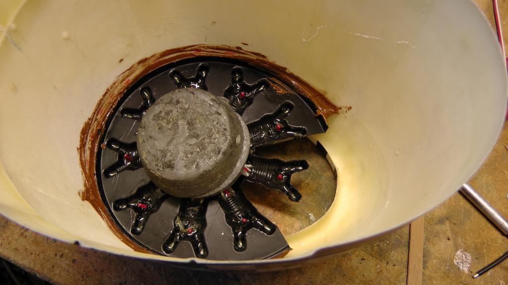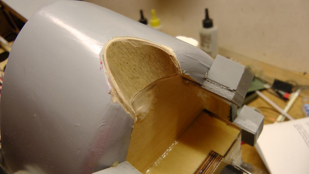 Limmas i kåpan med epoxy uppblandat med mikroballonger