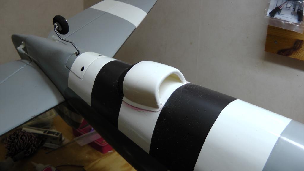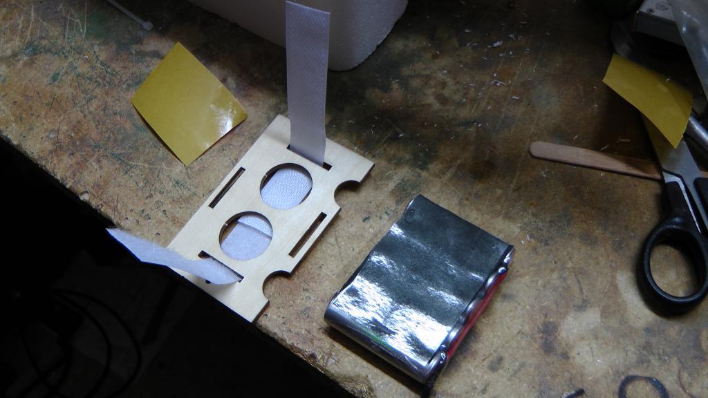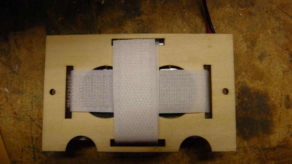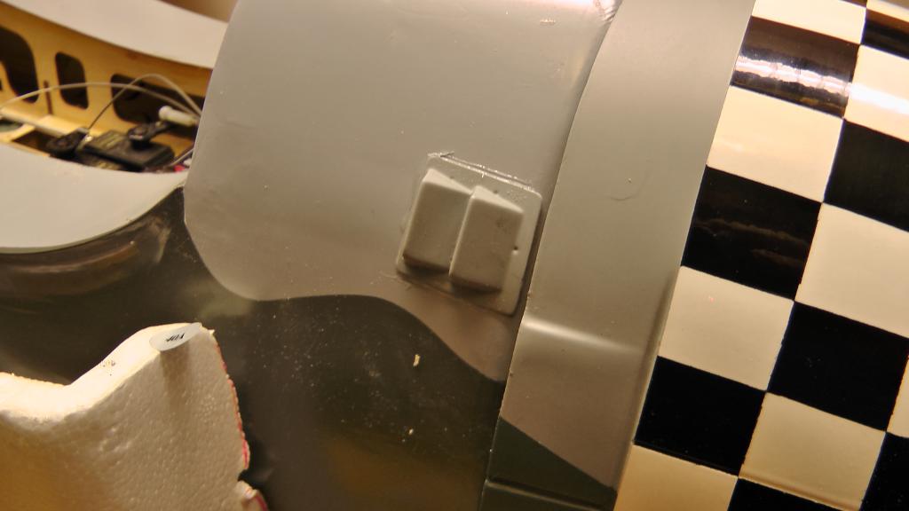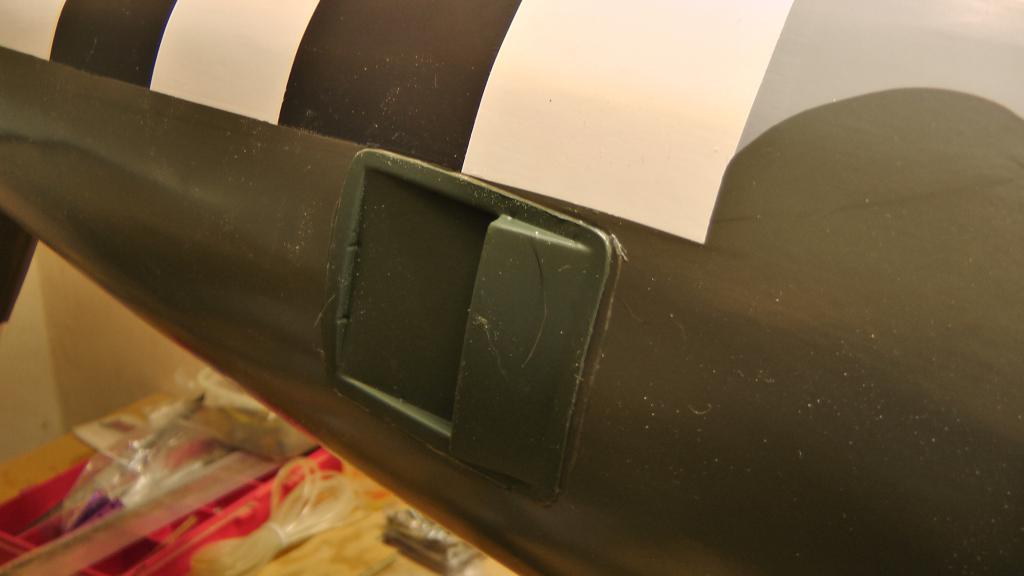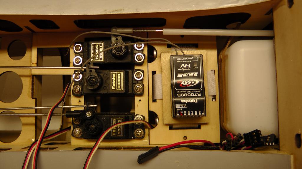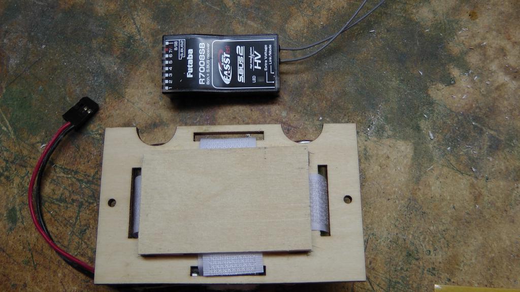 Platta för acce och mottagare medföljer. Den skruvas fast på två hårdträlister som är limmade på kroppssidorna. Accen fästs med karborreband på ena sidan, lägger en skiva med 3mm dh-skum under. Sen tänker sig TF att man lägger mottagaren på andra sidan under samma kardborreband.