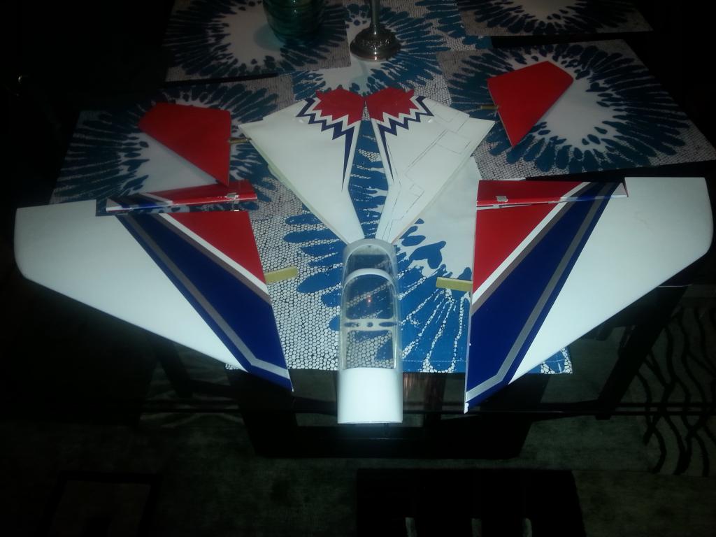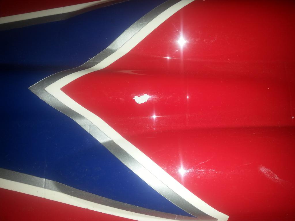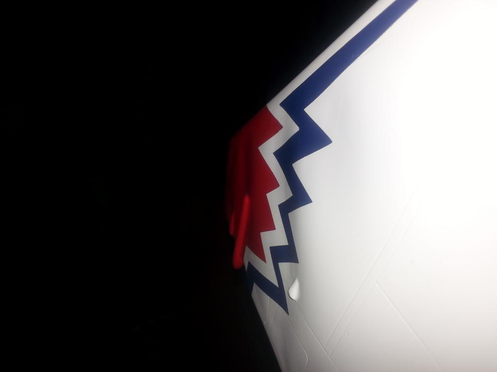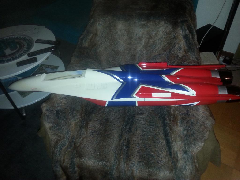 Redig hobbyking kvalitet så färgen har släppt på några ställen, det finns sprickor i gelcoaten på några ställen och några grejer ser ut som vågor. Men den ska nog flyga ändå. Känner inte för att fixa till allt det kosmetiska men vi får se.