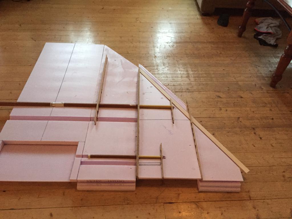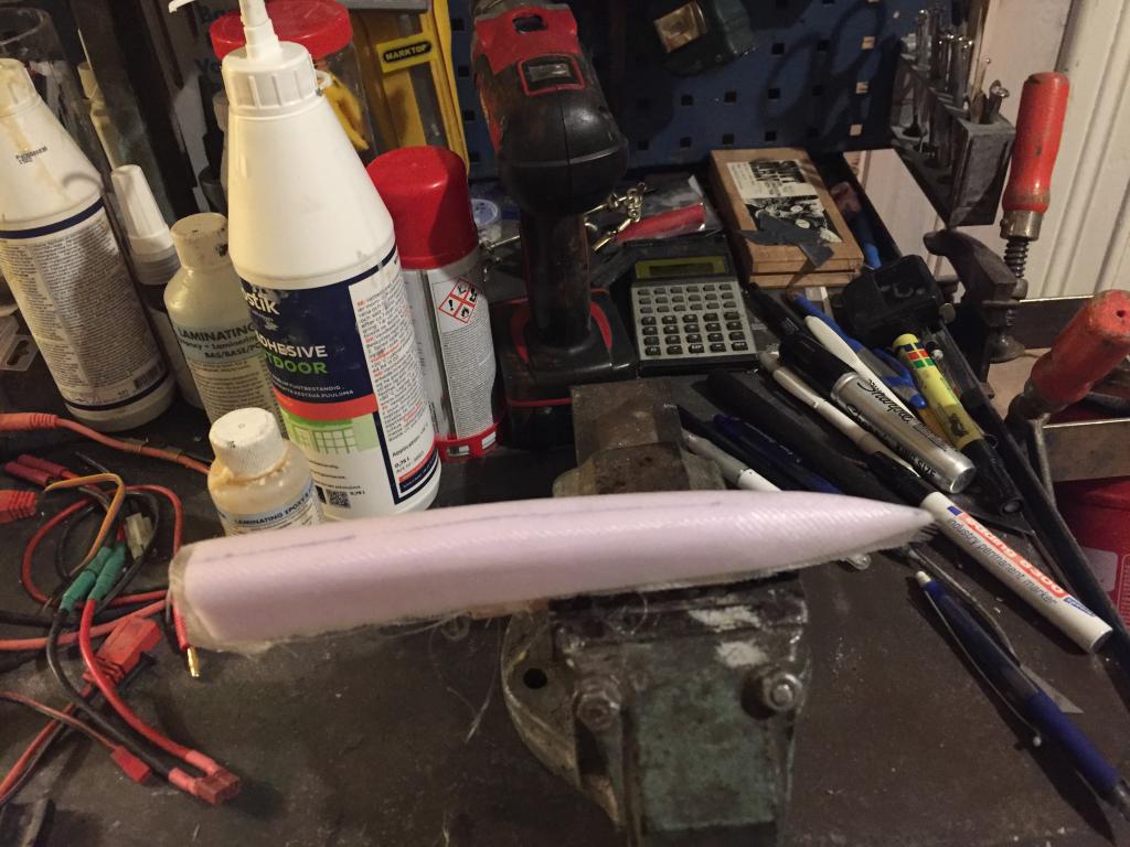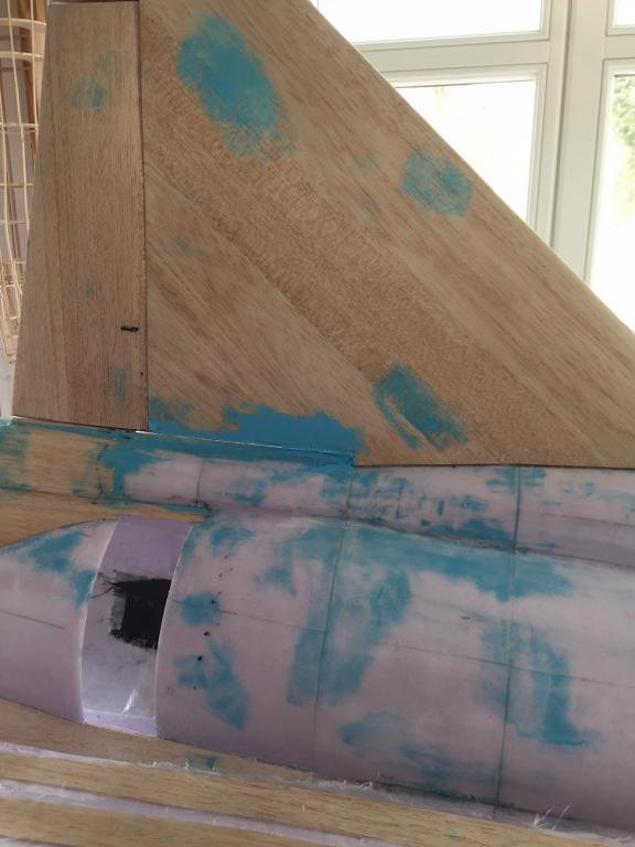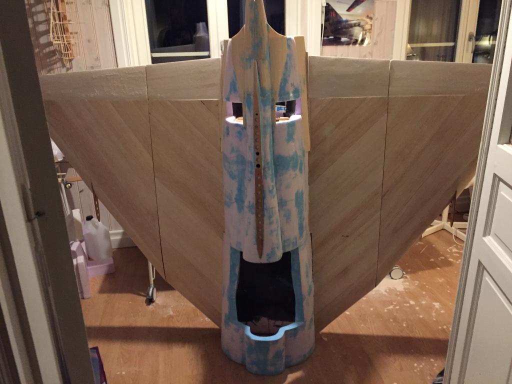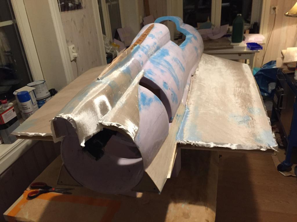 Det går sakta framåt, har gjort mallar avplastskivor för spackling av fogar mellan vingdelar, fena och kroppsdelning och så