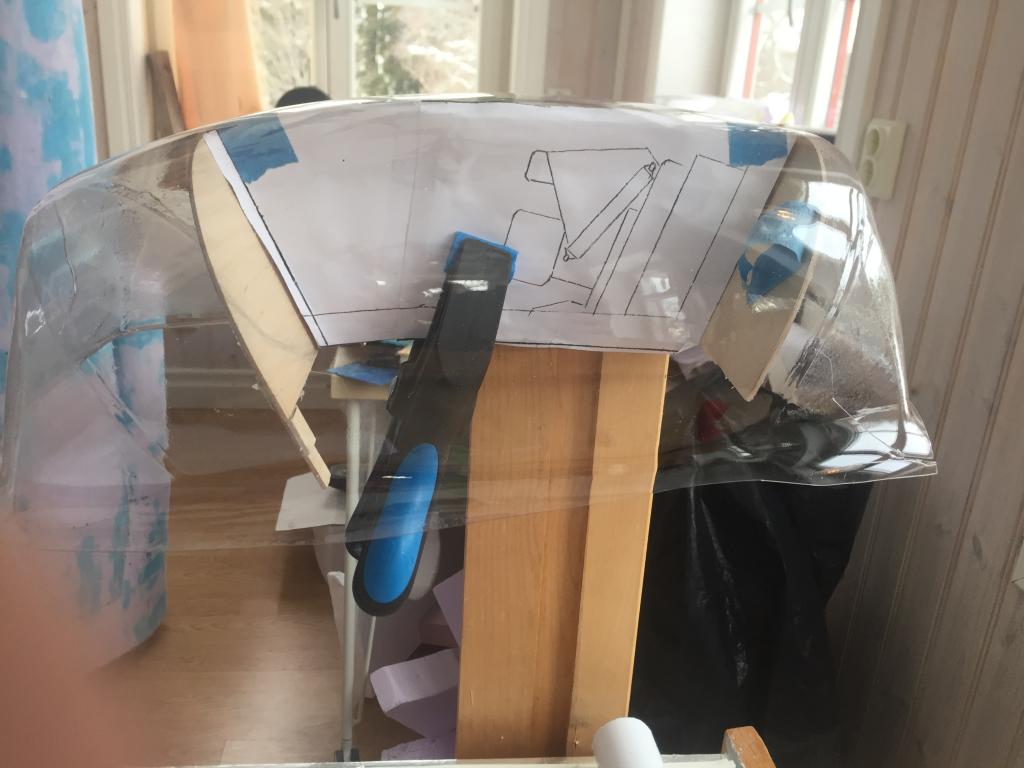 Provade både 1 och 2 mm tjocklek på PETG plasten. Det blir 2 mm i huven och 1 mm i frontruta.