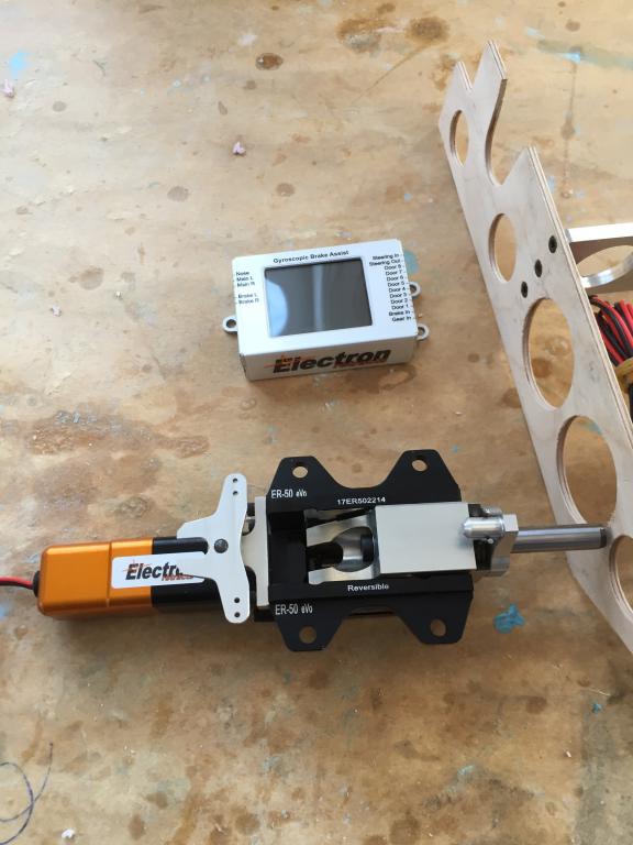 Så kom äntligen Electron ställ och bromsar med den nya styrenheten. Den har inbyggt gyro för bromsverkan och styrservo samt utgångar för max 8 luckservon.