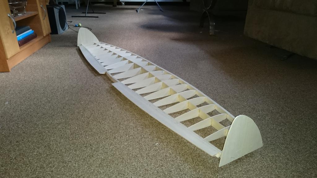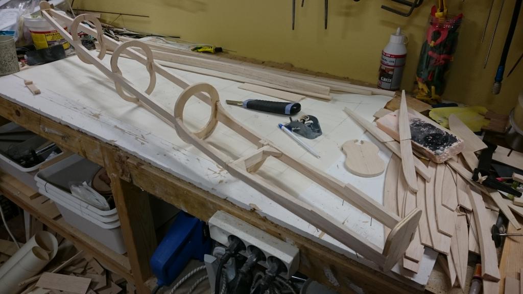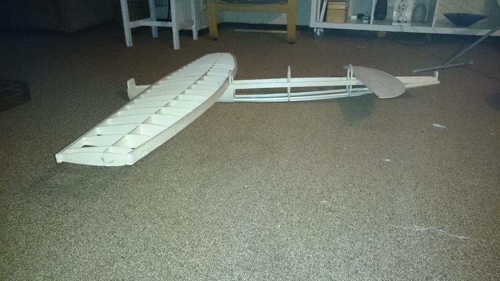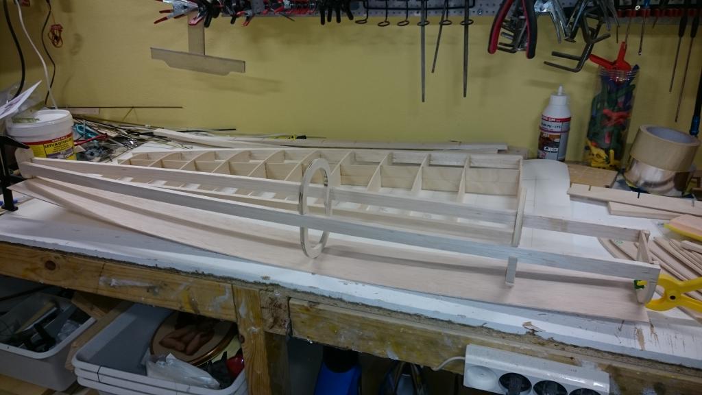 kommer väl ihåg ritningen du gjorde och kroppen var byggd i 8x8 eller 10x10 mm balsalister och den rundade överbyggnaden i 0,4 plywood.