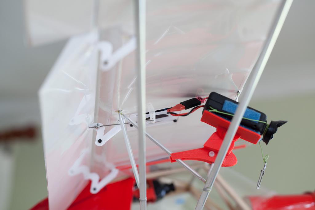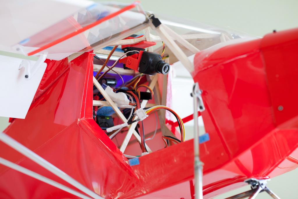 Cyclops STORM OSD, bakom cockpit, GPSen under "turtle decket" bakom, 5,8GHz videosändare ute på ena vingen fäst i vingstöttan. FPV kamera på specialdesignad pan/tilt i cockpit. Här är utmaningen att navigera då kameravinkeln inte medger någon bra bild rakt framåt-nedåt utan jag kommer va tvungen titta ut genom dörrarna för att få marksikt. Detta ska bli spännande...