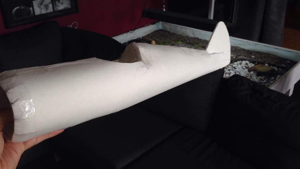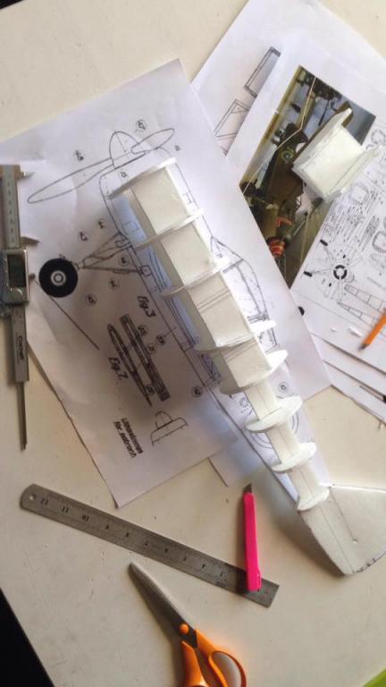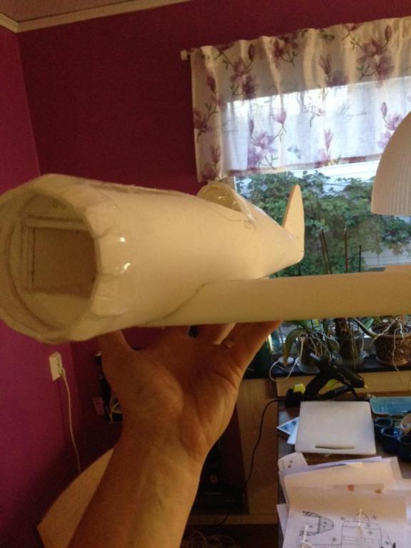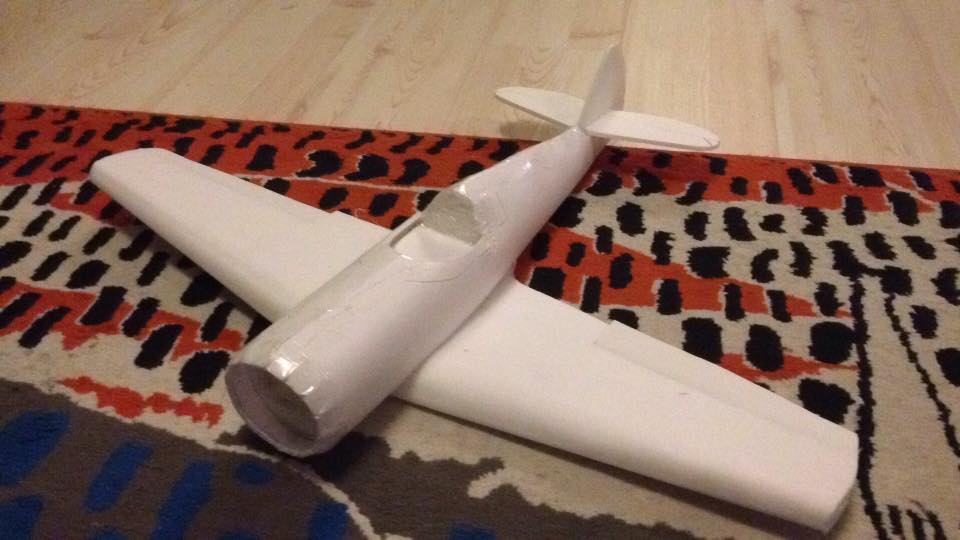 Tog till endel i vinkeln på vingen, för att få lite mer stabilitet. Nu ska jag bara ta ur i själva kroppen, för att på plats med vingen. Det får vi ta tag i när barnen gått och lagt sig... Kunde kanske ha gjort vingprofilen lite tunnare, vi får se hur den flyger. Flitetests kärror har dessutom kapat av underdelen av vingen, på sina spitfire etc. för att undvinga wing-tipp-stall. Funderar på att göra det också...
