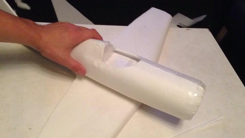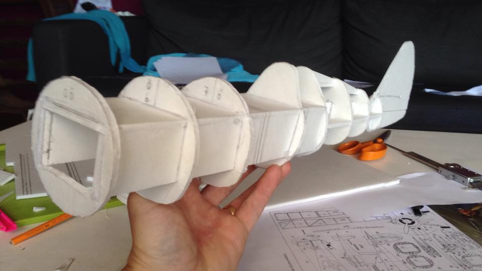 Dåså. I FT:s egna vingar skär man ofta tre snitt, längs med framkanten på vingen, för att få en vingprofil. Jag använde istället tekniken, att skära bort pappret på insidan, precis som när jag rullade kroppen, man får en jämnare kant då.