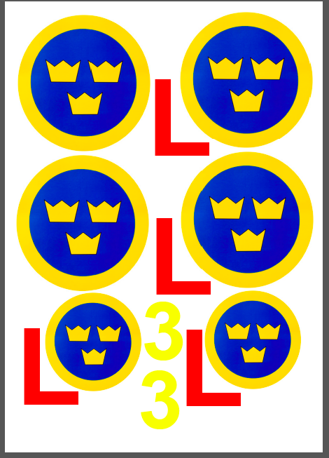 Sådär, då har man fixat emblem i PDF för utskrift på självhäftande papper. Haha, det är alltid en utmaning att få plats med allt på sån liten yta som möjligt! Borde finnas någon ekvation för att få till det!