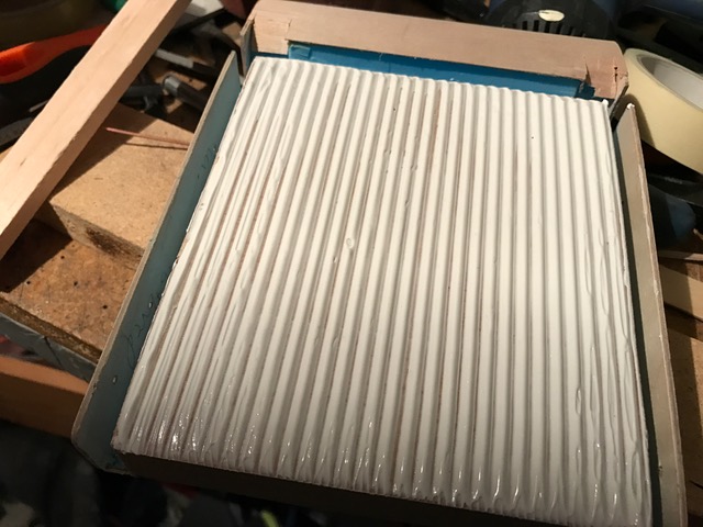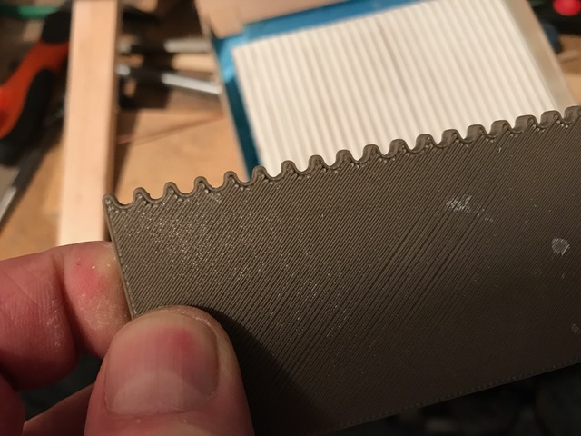Du har helt rätt, "rib stitchingen" är överdimensionerad. Jag insåg det när jag hade kommit halvvägs men latheten tog överhanden så i valet att fortsätt eller börja om blev det att fortsätta. Sen blev det ännu tydligare efter att silverfärgen kom på. Det är lite olika struktur på tejpen och klädseln så ljuset reflekteras helt olika. Mitt hopp står till att den matta skyddslacken som skall på till slut skall hjälpa upp lite genom att minska reflektionen.