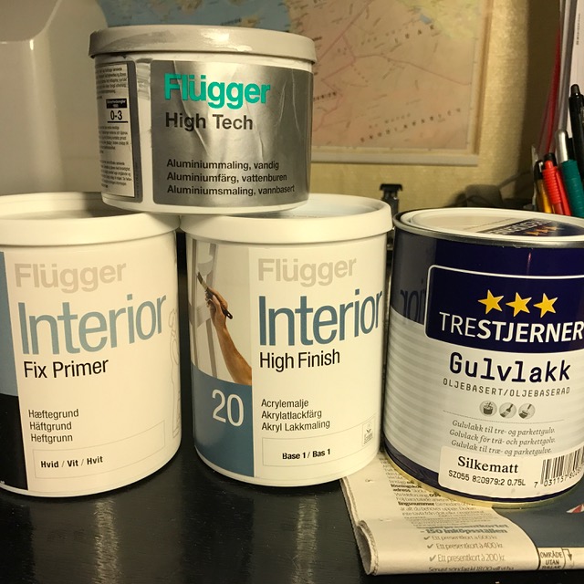 Normalt brukar jag använda vattenspädbar inomhuslackfärg från Flügger men den här gången blev det lite annarlunda. Till vingarna kommer det dock att bli sen gamla vanliga vattenspädbara varianten....