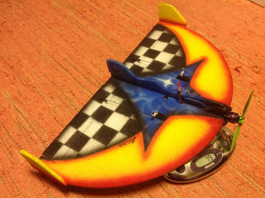 Tyvärr så la jag på för lite mycket färg så vikten kom att landa på 120g med ett 350mA batteri, istället för ca 100g. Kommer att spraya mycket tunnare nästa gång.