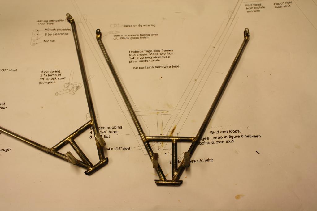 Eftersom det är en Mick reeves-materialsats så finns det ingen byggbeskrivning utan man får använda ritningen tillsammans med lite funderingar här o där. I övrigt finns det inte mycket att invända mot, alla bitar till vingarna är t ex buntade ihop och övriga delar mycket bra numrerade. Inget för en nybörjare men borde ge en något erfaren byggare en trevlig utmaning. Förra modellen, Sopwith Camel, skapade inga som helst problem och så här långt så ser det lovande ut med denna också. Lite hårdlödning i dag under tiden som limmet torkar på kroppen. Stålrör av fin kvalitet, inga tunga pianotrådar här inte.