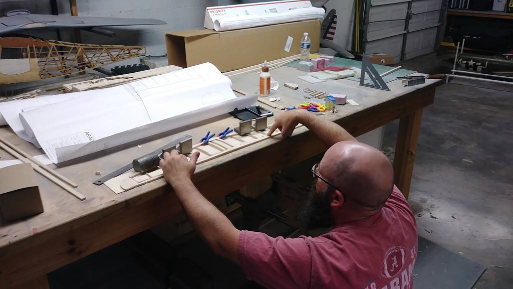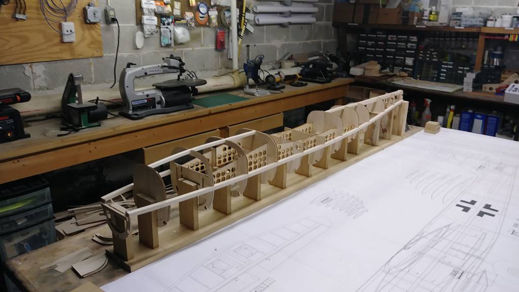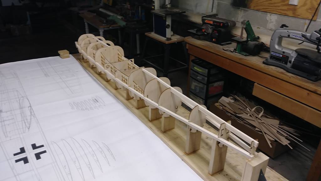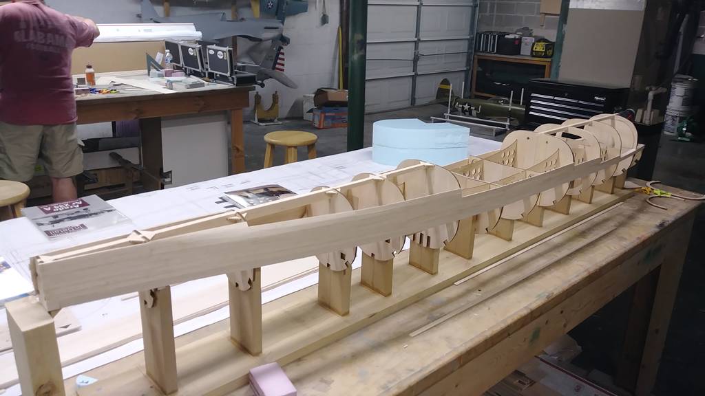Nästa steg blir att montera alla spanten på jiggen.