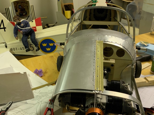 När det gäller vikten tror jag att det inte skall behöva bli tyngre att bygga i metall. Tror snarast att det skulle gå att bygga lättare om man verkligen utnyttjar egenskaperna hos den tunna alu-plåten. Jag har inte tillräcklig erfarenhet och teknik för att nyttja plåten fullt ut och därför blir det lite "hybrid-bygge" och kanske då lätt lite överdimensionerat för säkerhets skull.