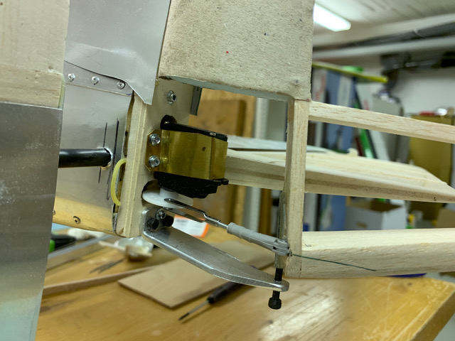 Sidoroderservot är monterat i fenan och har en kort stötstång till rodret. Hela enheten fena/sidoroder kan monteras bort. Safiren har ju rodrets vidningsaxel lutande och med mycket roder framför axeln i nedre delen så det blev gott om plats för servot som kommer att täckas av en kåpa i lithoplåt.
