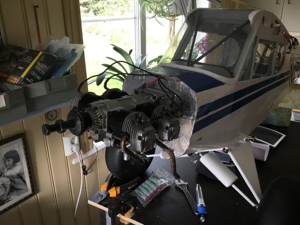 Jag har kört min motor i bänk. Den kommer också att få gå på 80/20 metanol men jag har konverterat till tändsystem istället för ombord-glöd. Hade från början planer på att bensinkonvertera men är lite feg - den kommer då att gå varmare och för att det skall vara någon större vits skulle jag i så fall vilja köra på mycket mindre oljeinblandning. Har testat det på en OS 50 cc Twin och då gav en vevstake upp. Vill inte riskera det på en Pegasus...