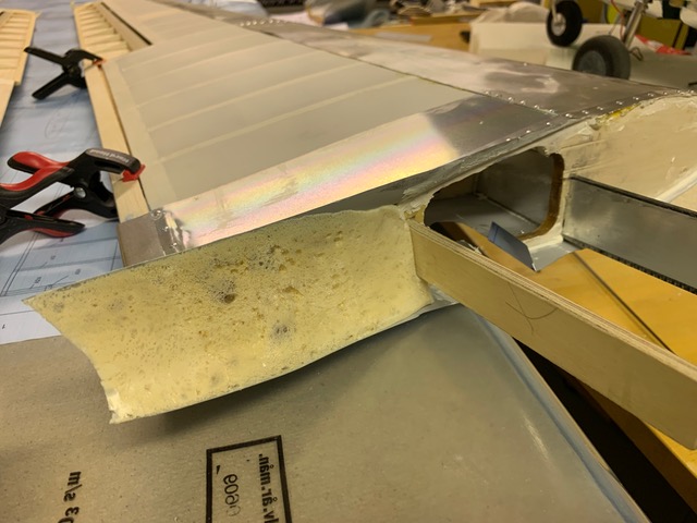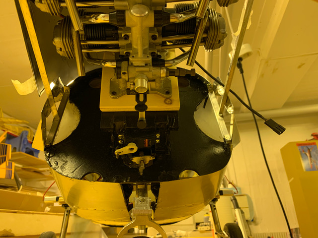 Styrningen av noshjulet på plats. Servot sitter monterat på tvären i motorrummet. Det blev enkelt men kanske inte optimalt då servot lätt "gungar" i sidled i gummibussningarna. Får duga tills vidare och kan ändras till att lägga servot i kroppen och använda vajrar istället för den korta länken med kulleder.