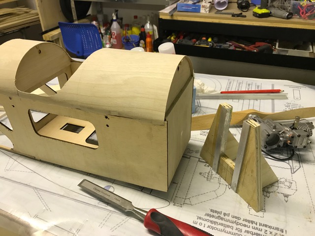 Bygget har tillfälligt avstannat beroende på att vi blivit tvungna att flytta från vår gemensamma hobbylokal till en ny lokal. Den ligger visserligen bara i huset intill där vi (8 RC-flygare) haft lokalen under ca 4 år. Men 4 år är en ganska lång tid och man samlar på sig MYCKET grejor - inser man när det är flytt på gång.