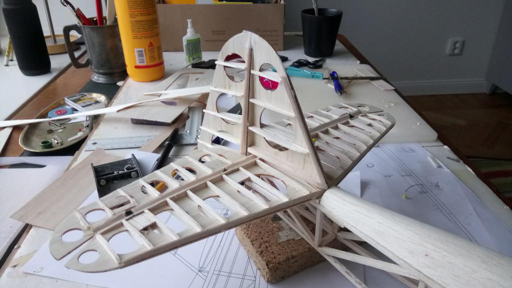 Jag har nu bestämt mig för att bygga en mindre modell med spännvidd på ungefär 114 cm. Allt underlag finns kvar och efter två byggen kan jag modellen ganska väl.