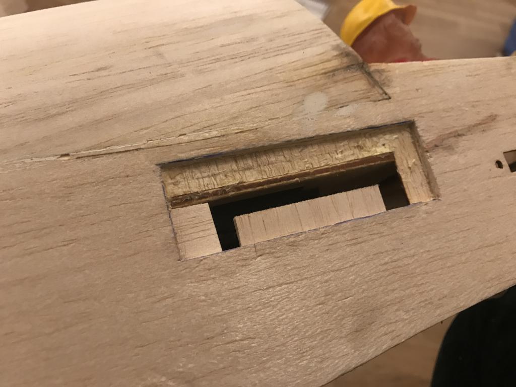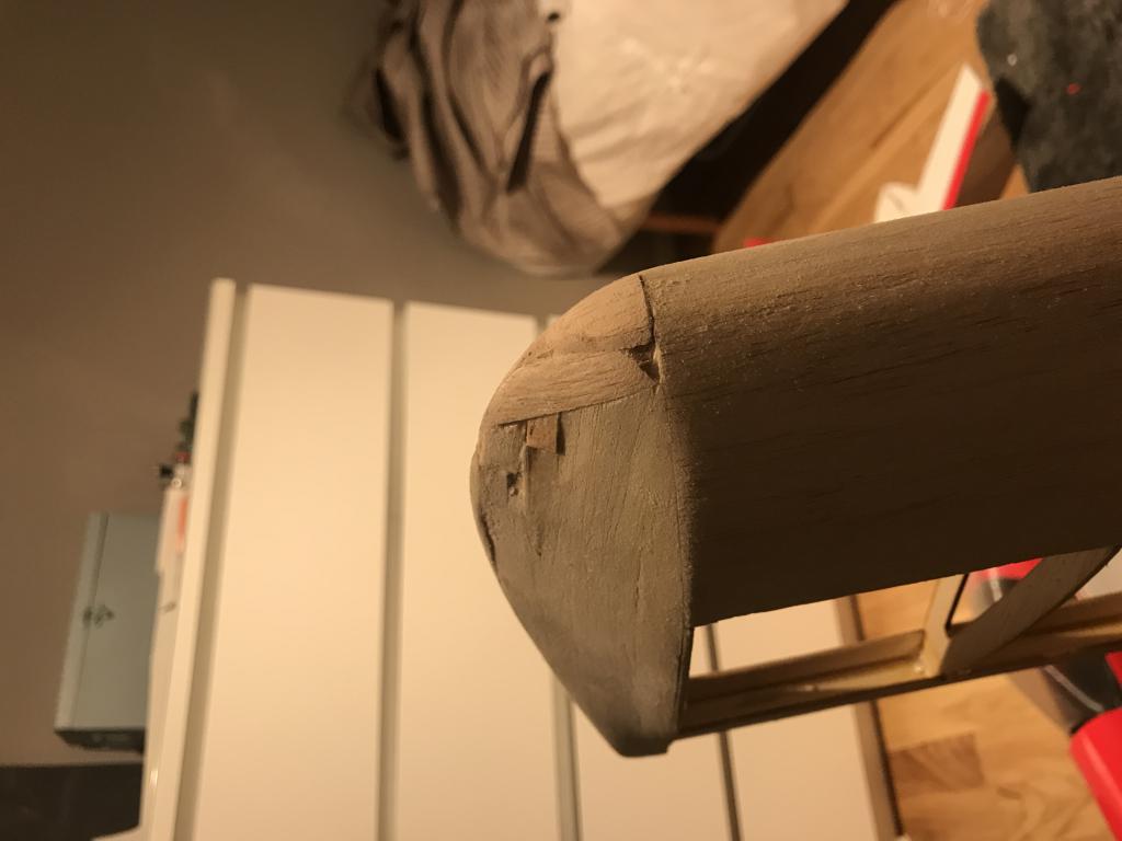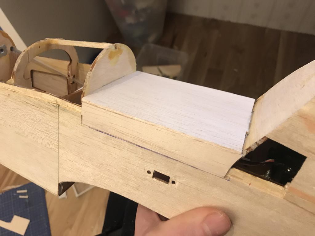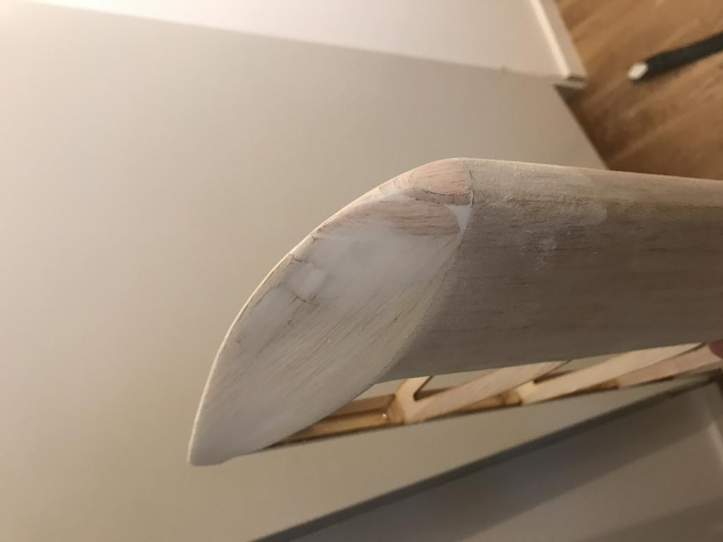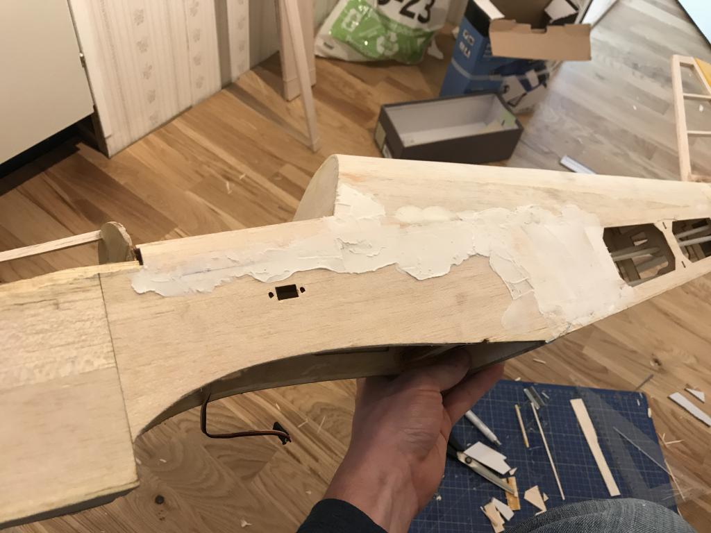 Limma med nåt lämpligt lim också som går att slipa. Limmar du med fel CA-lim och sen slipar så kommer du slipa ner balsat på nolltid och CA-limmet är hårt och sticker ut. Jag är ingen guru på trälim, men jag har nog använt Medium CA-lim trots allt och haft stora slipdon och satsat på slipa ner limmet, då kommer träet med :-D. Men har även limmat med UHU Hart som är genomskinligt och har funkat riktigt bra. Det som kläs över syns inte, men om du inte få ytan slät så syns det. Jag har använt ett spackel Hobbico HobbyLite Filler (finns nån variant), även Model-lite om jag minns rätt.