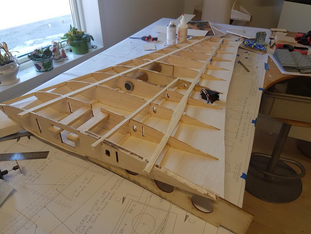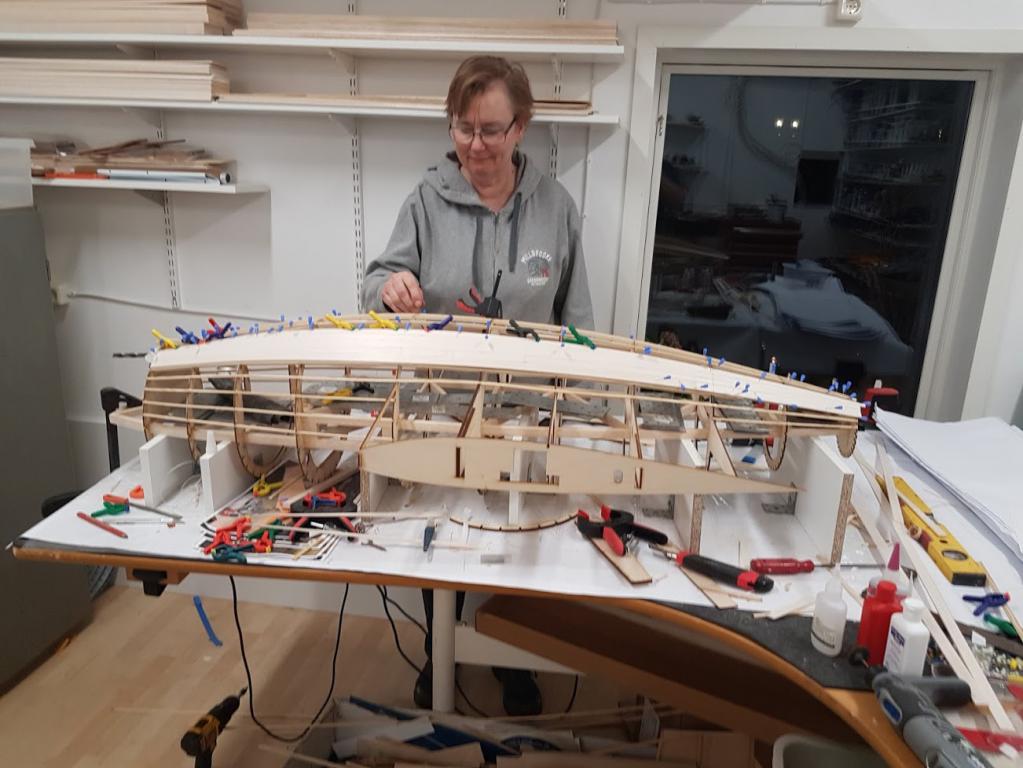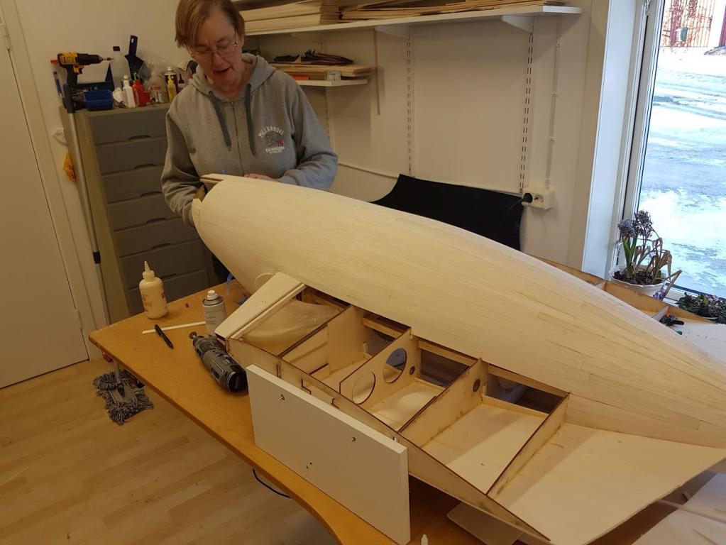 Hennes hantverksskicklighet med trä samt tålamodet med nyheten att allt görs från ritningar utan byggbeskrivningar är fantastisk. För den som undrar så kommer ställmekanismerna från Electron Retracts,resten är Per Perssons blandning,hjul från Ziroli P-38 o ställben från indien..