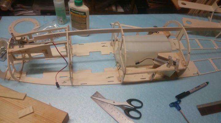Tank har jag fixat, en som rymmer 960ml, sitter mellan ställen framför turbinen mitt i TP, turbinen tar den luft den behöver som kommer in från sidan runt tanken, turbinen behöver ej fritt framför som en edf. Tack för tipsen Lars, har kollat på de tunna tankarna från Sullivan men volymen blir för liten. En hopper på 120ml skall också in framför TP.MVH Kjell-Åke Skoog