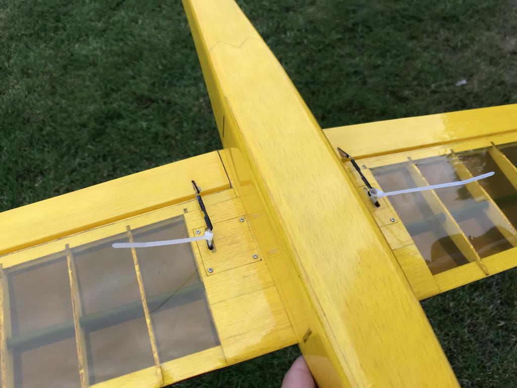 Monterat skeven med tunna mylargångjärn som jag delade på. Lägger sedan en remsa klädsel i diket på undersidan och en tunn remsa över skarv mellan vinge och skev på översida.