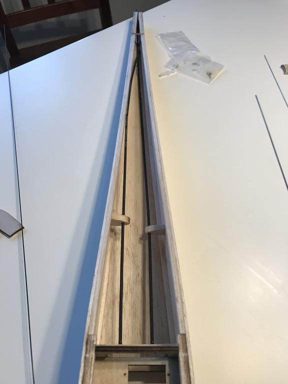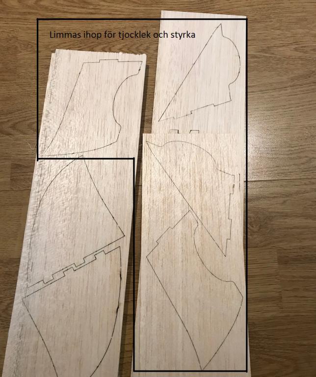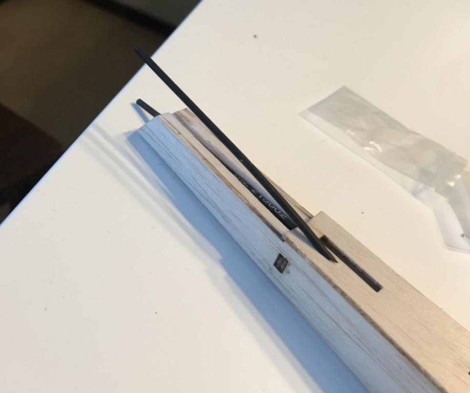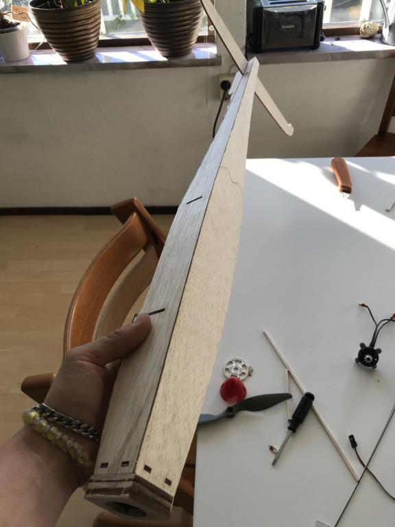 Kan lägga till här att jag också limma dit 3x3mm i kroppen där stabbe sitter så det inte är de fjuttiga 2mm kroppsidorna som håller kvar stabbe, kommer säkerligen limma dit 3kants list ovan/under också för lite styvhet !