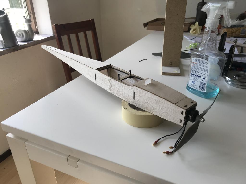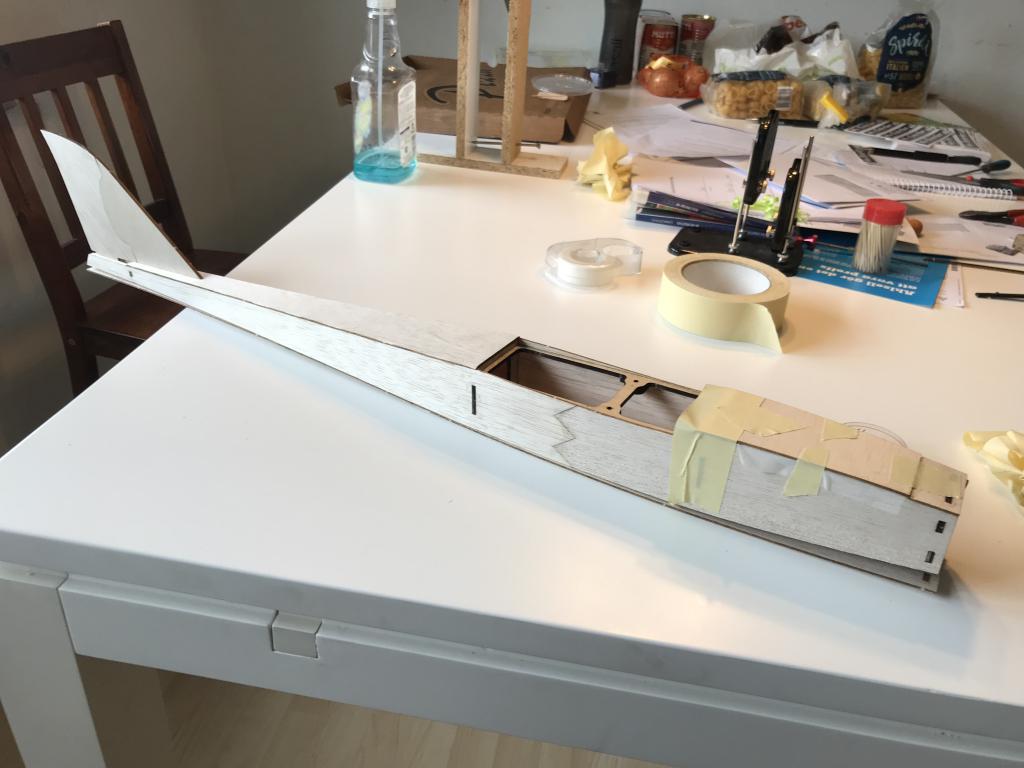 Kroppen är helt ihoplimmat just nu och är riktigt styv, kommer inte längre pga avsaknaden av 6mm kolfiberrör..!