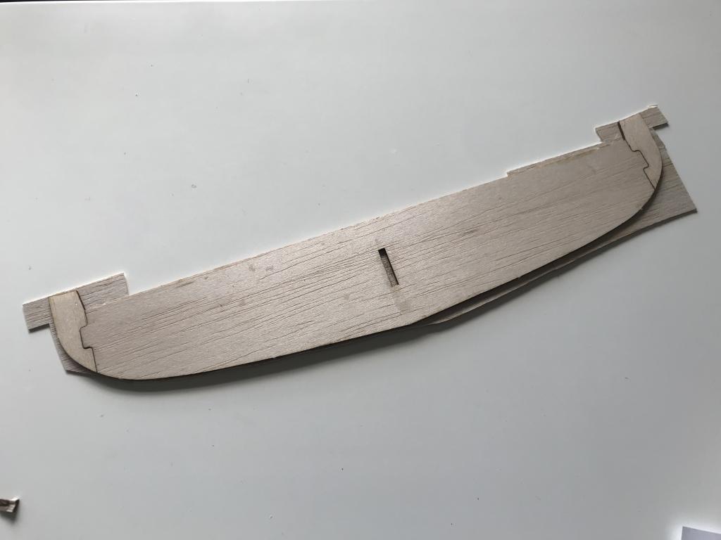 När man limmar kroppssidorna finns en viss vickmål i höjd som gör att stabben, som ni ser, blir drabbad. Jag tyckte jag var helt på noll men icke, som tur går allt att slipa lite i slutändan innan limning
