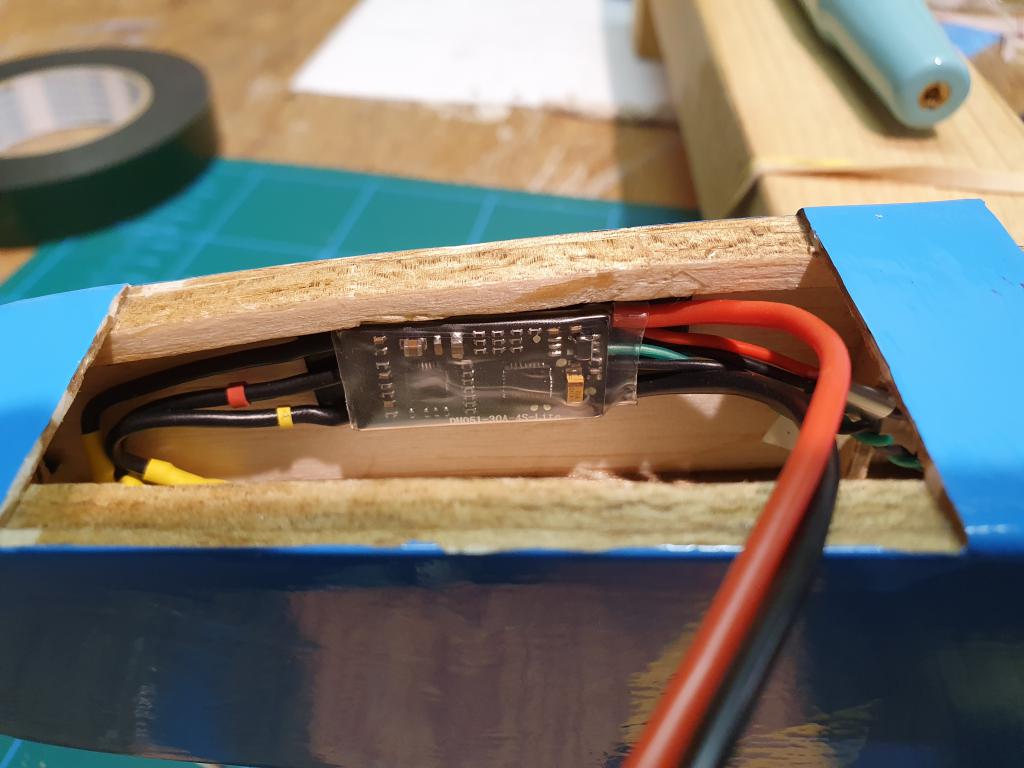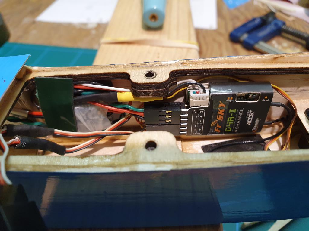 Kul att se att det gick bra med klädseln. Jag vet hur man skall göra men brukar själv stressa iväg när planet är näääästan färdigt, och så blir det nå't fel. Min tanke med huvlås i st.f magnet är att magneten kan sitta i vägen för batteribyte. Det är trångt i lilla 800an men du har hittat en bra plats för ESC'n.