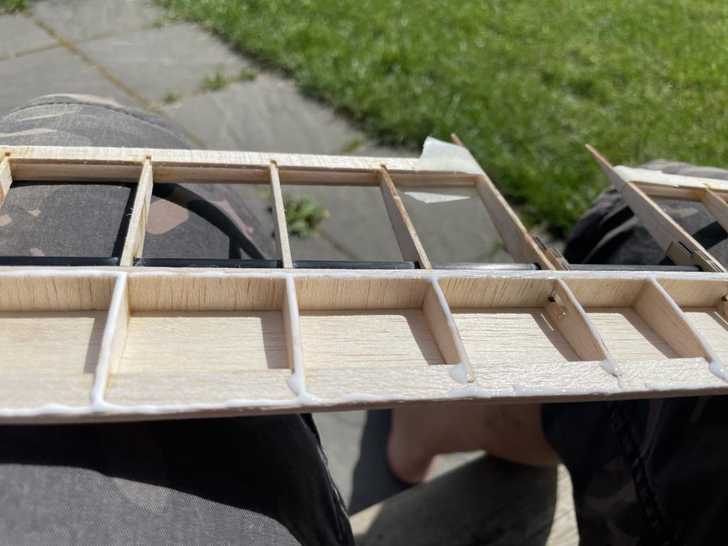 Kommer inte va vingtipparna på denna samt lite mindre skevroder, har lite funderingar på vilka typer av servon man ska skicka i denna vinge så det håller..
