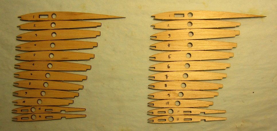 Spryglarna till en vinge brukar oftast vara identiska på enkla raka vingar och då kan man bunta ihop dem och slipa dem lika.